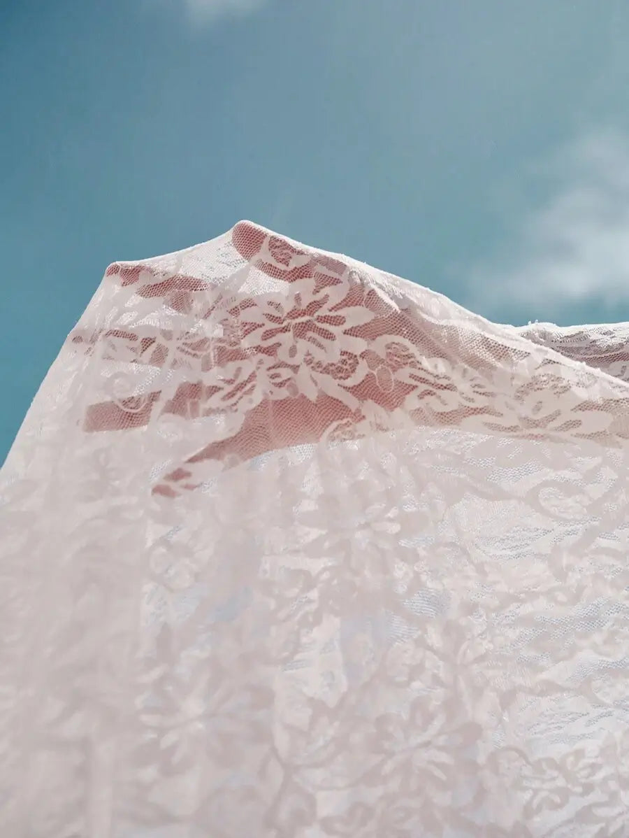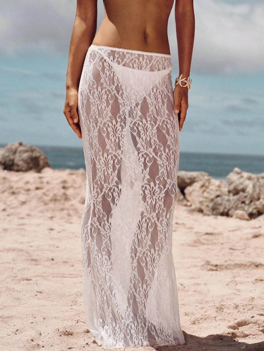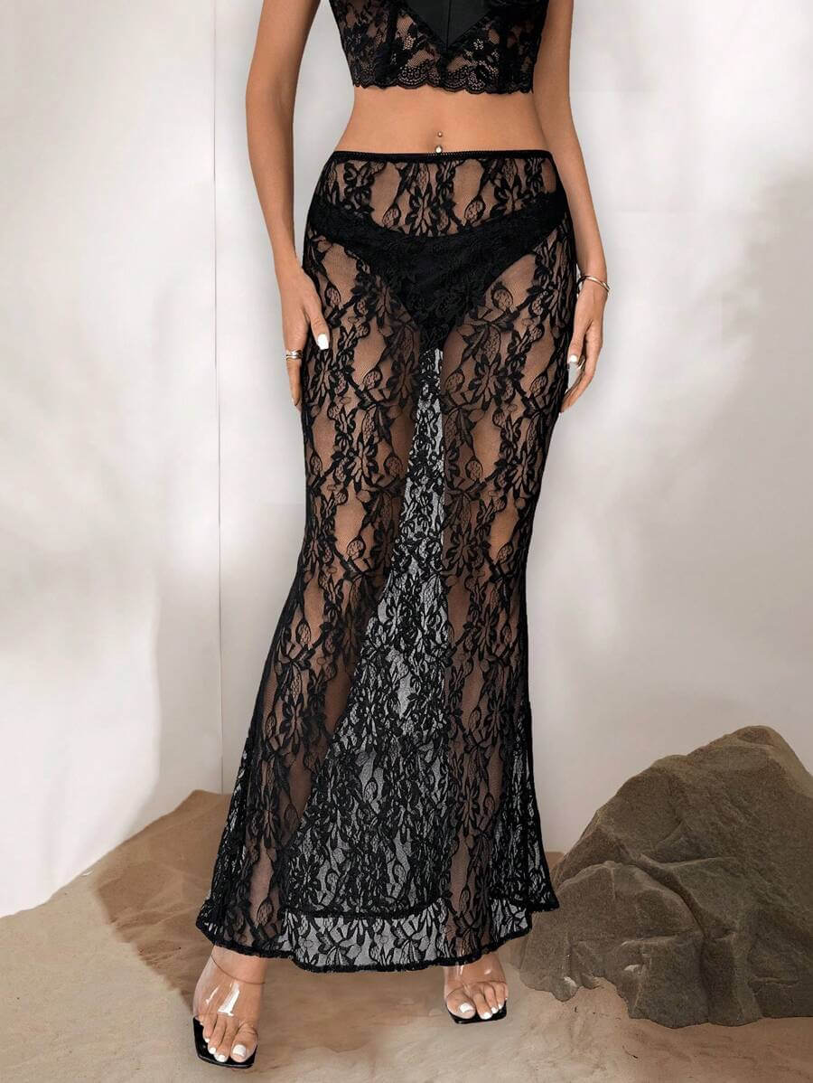تنورة كاجوال بلون واحد من الدانتيل المحبوك مع خصر منخفض وحاشية حورية البحر،