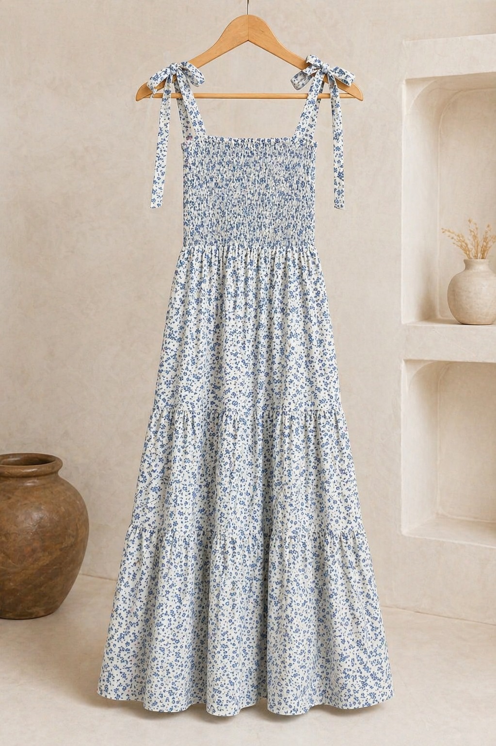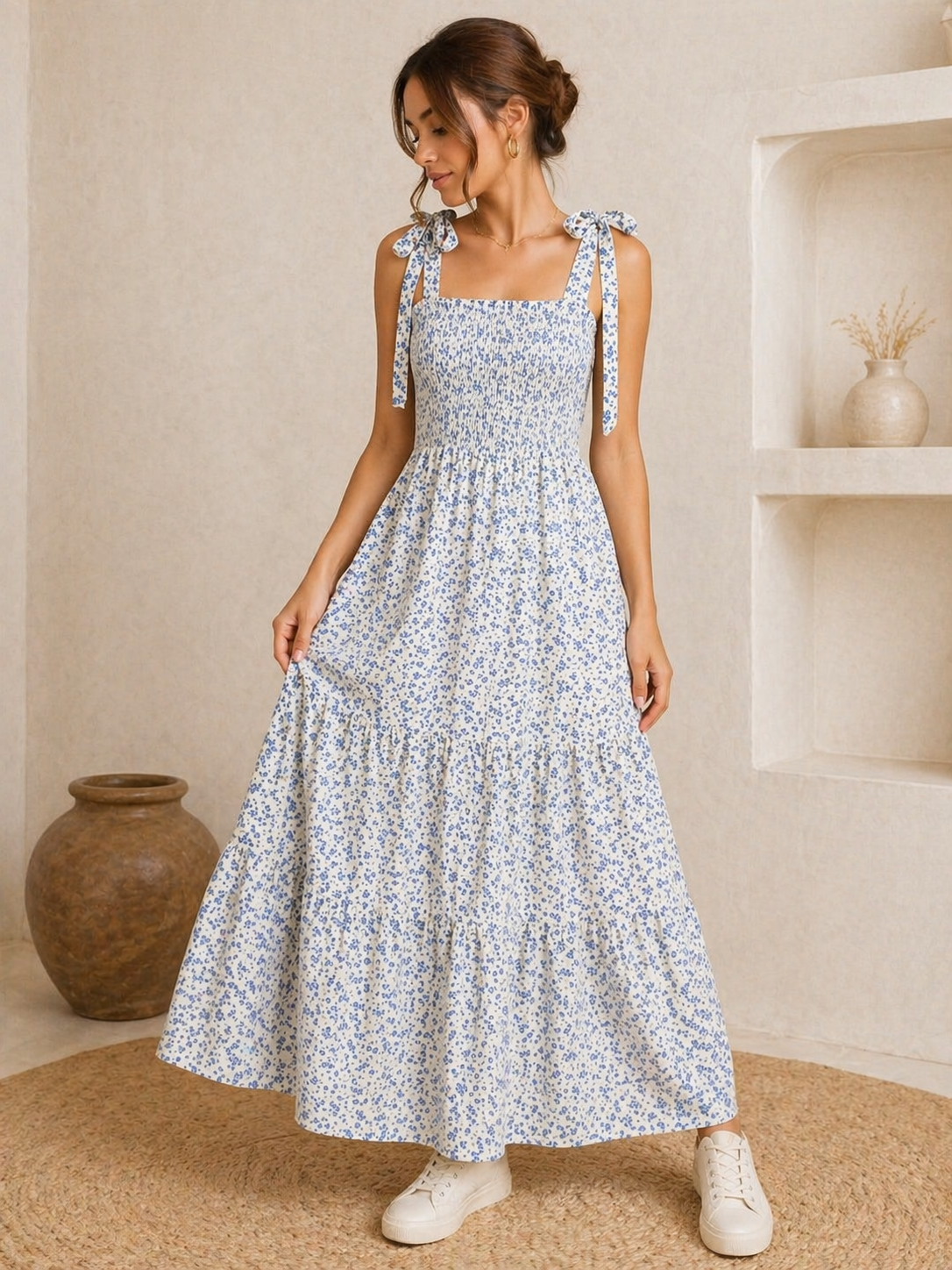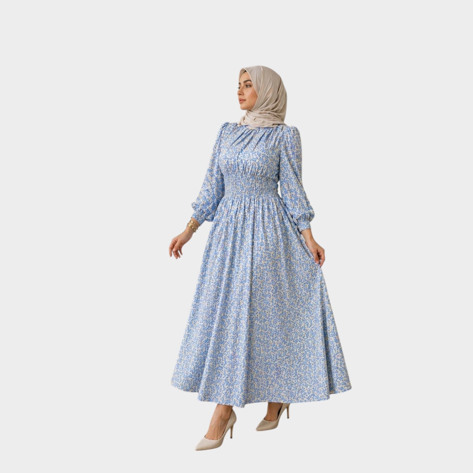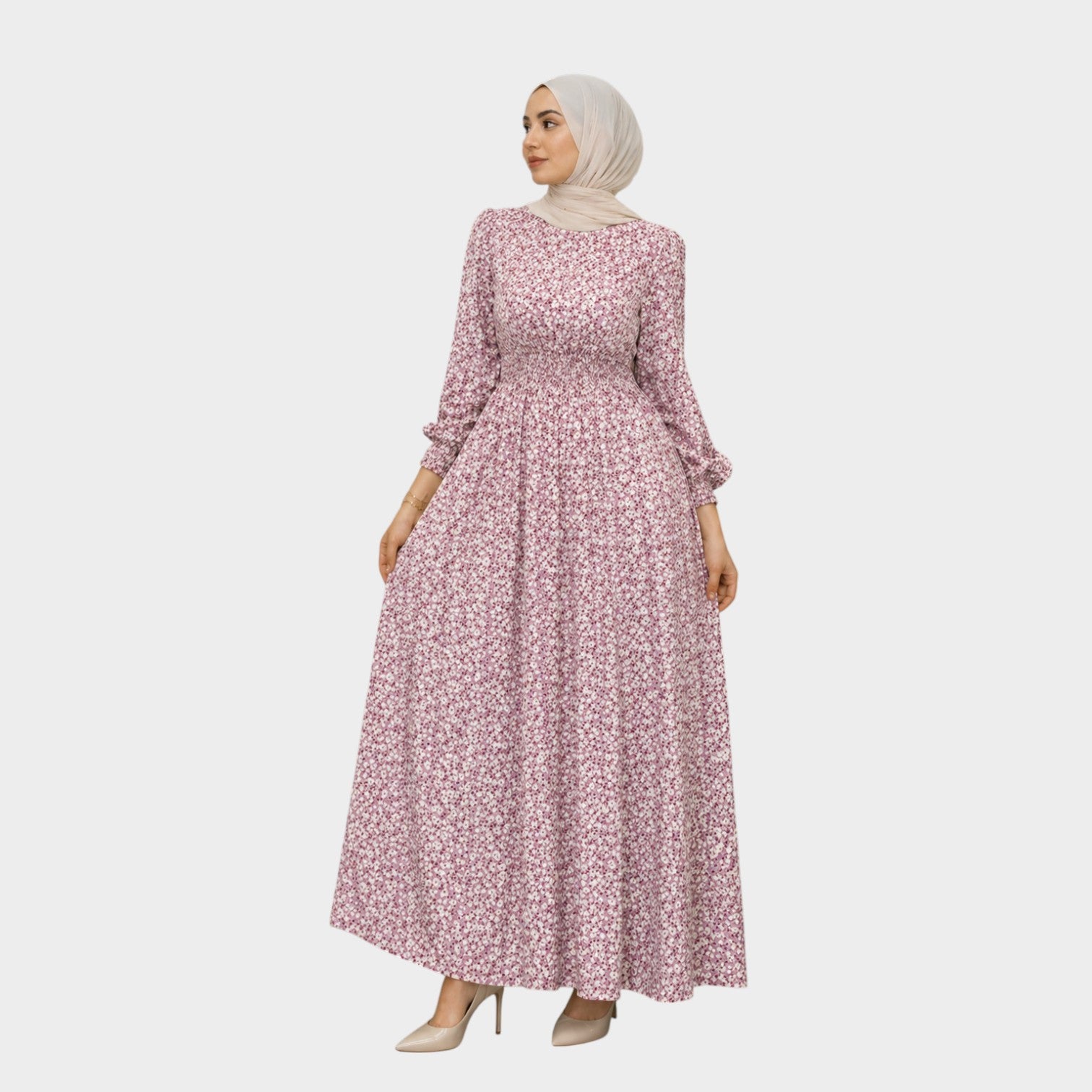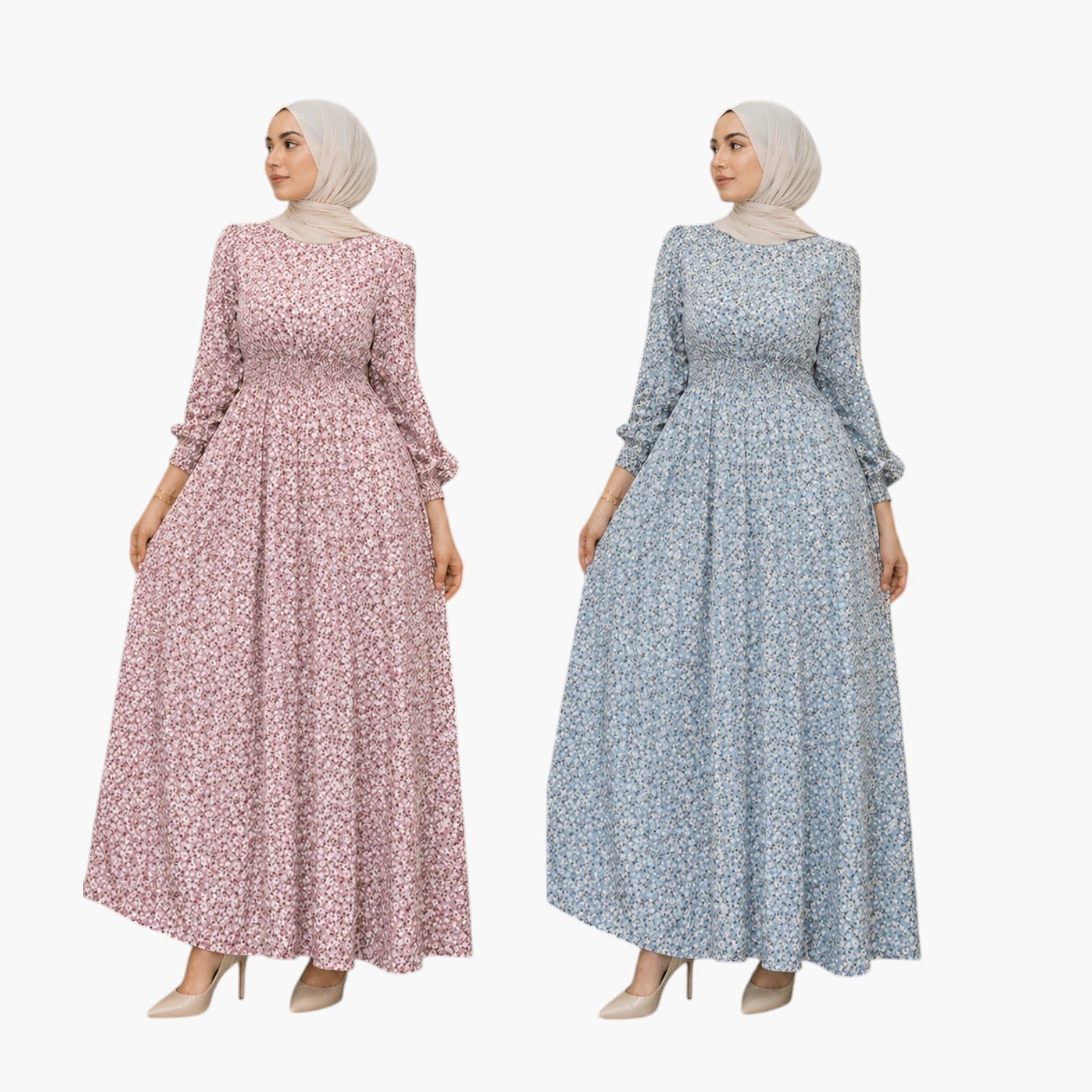 فستان طويل مزهر بياقة مربعة – ستايل أنثوي أنيق