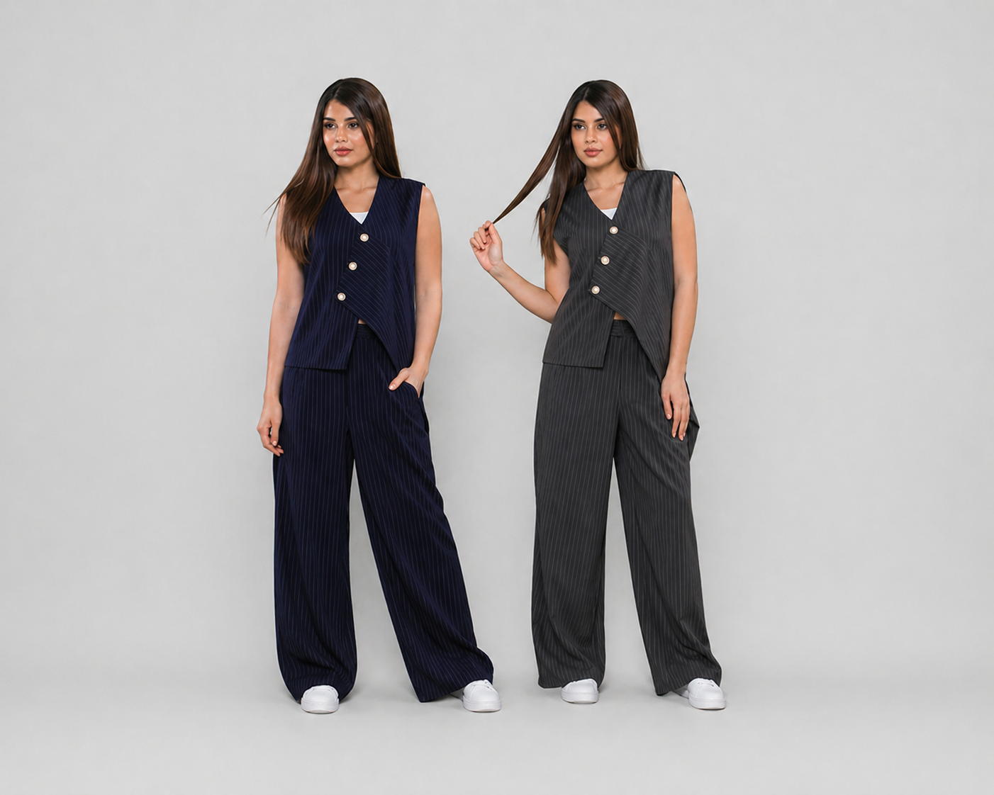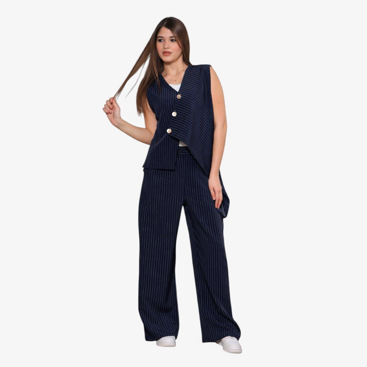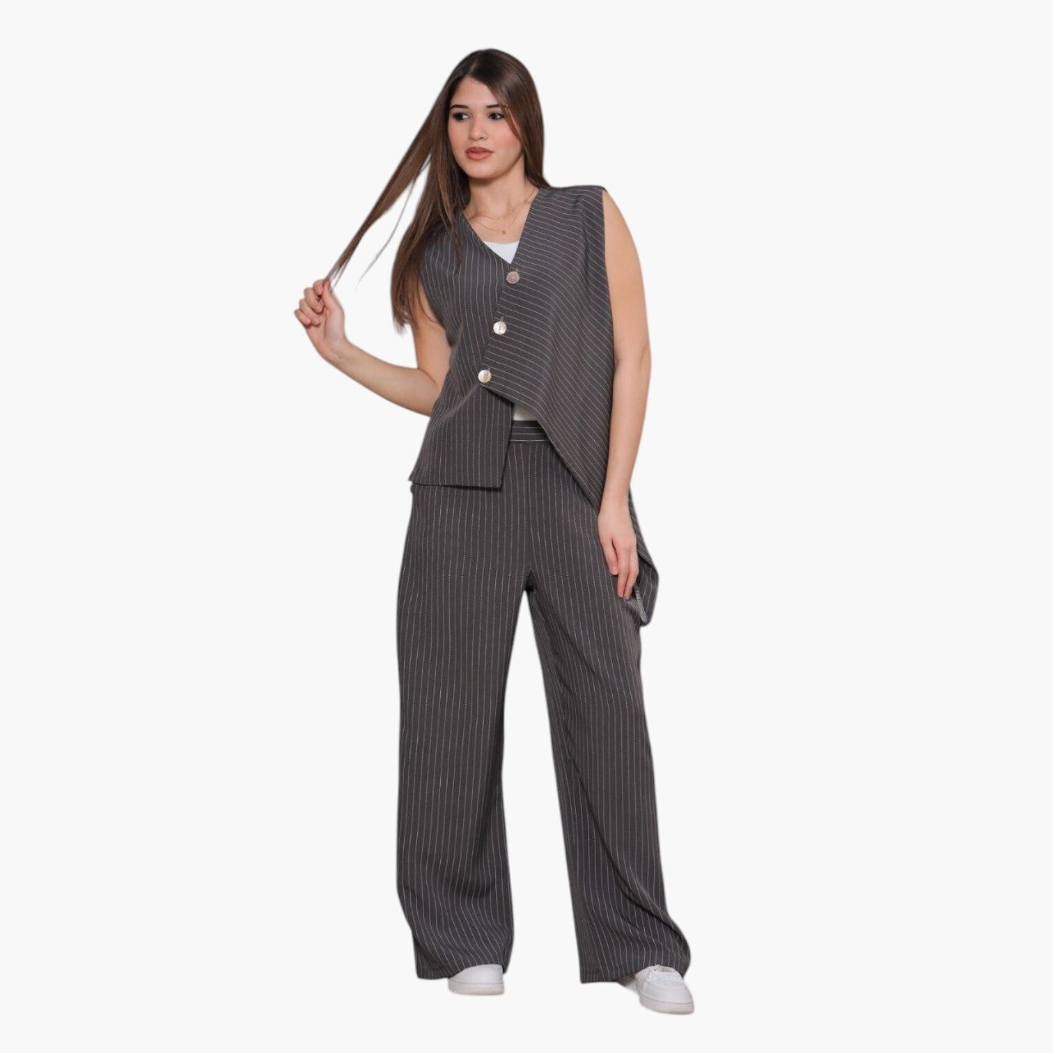 طقم نسائي كاجوال مخطط (فيست + بنطال قماش)