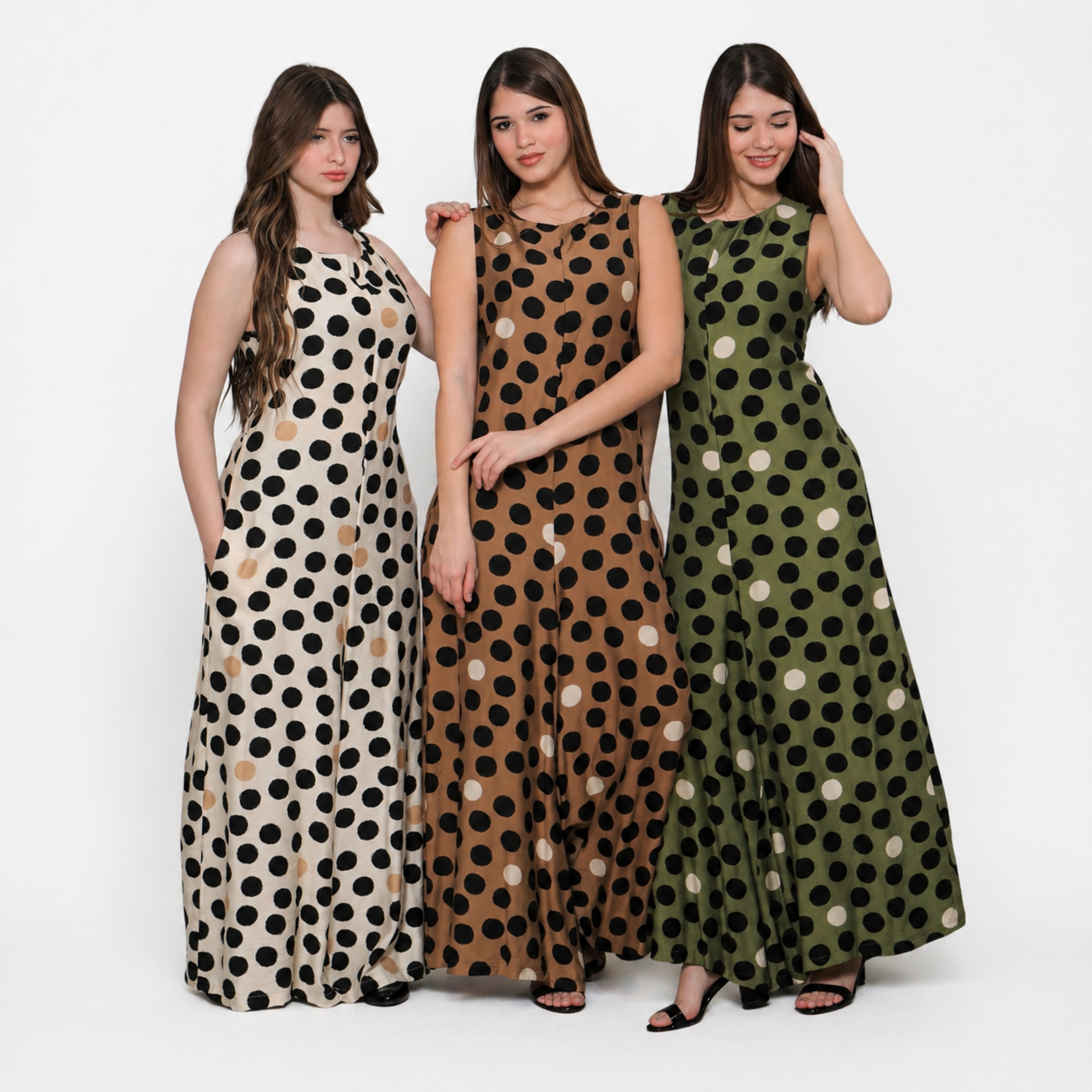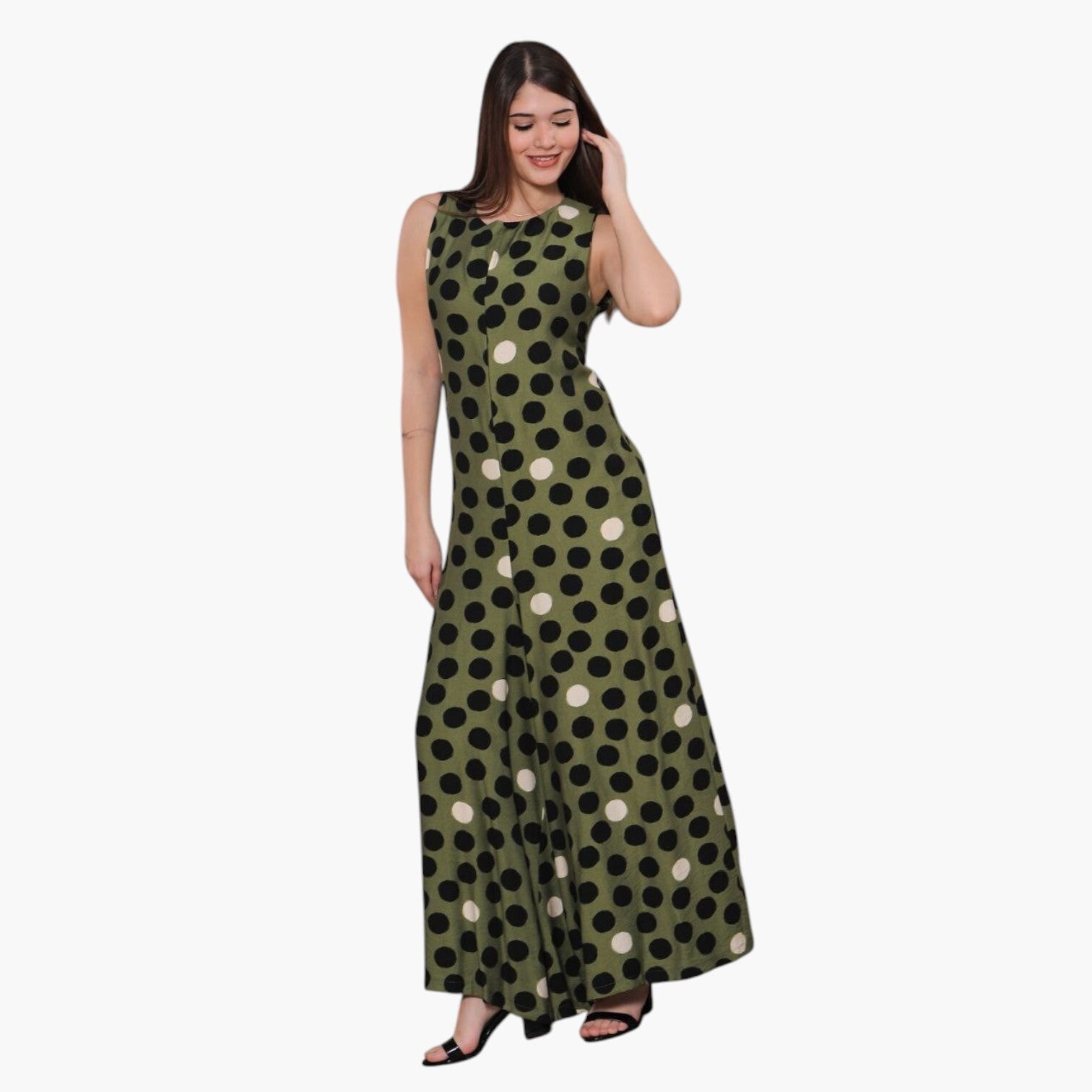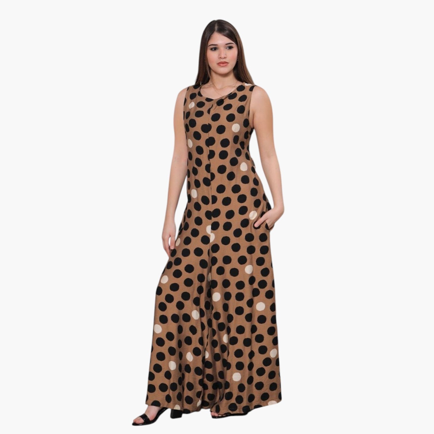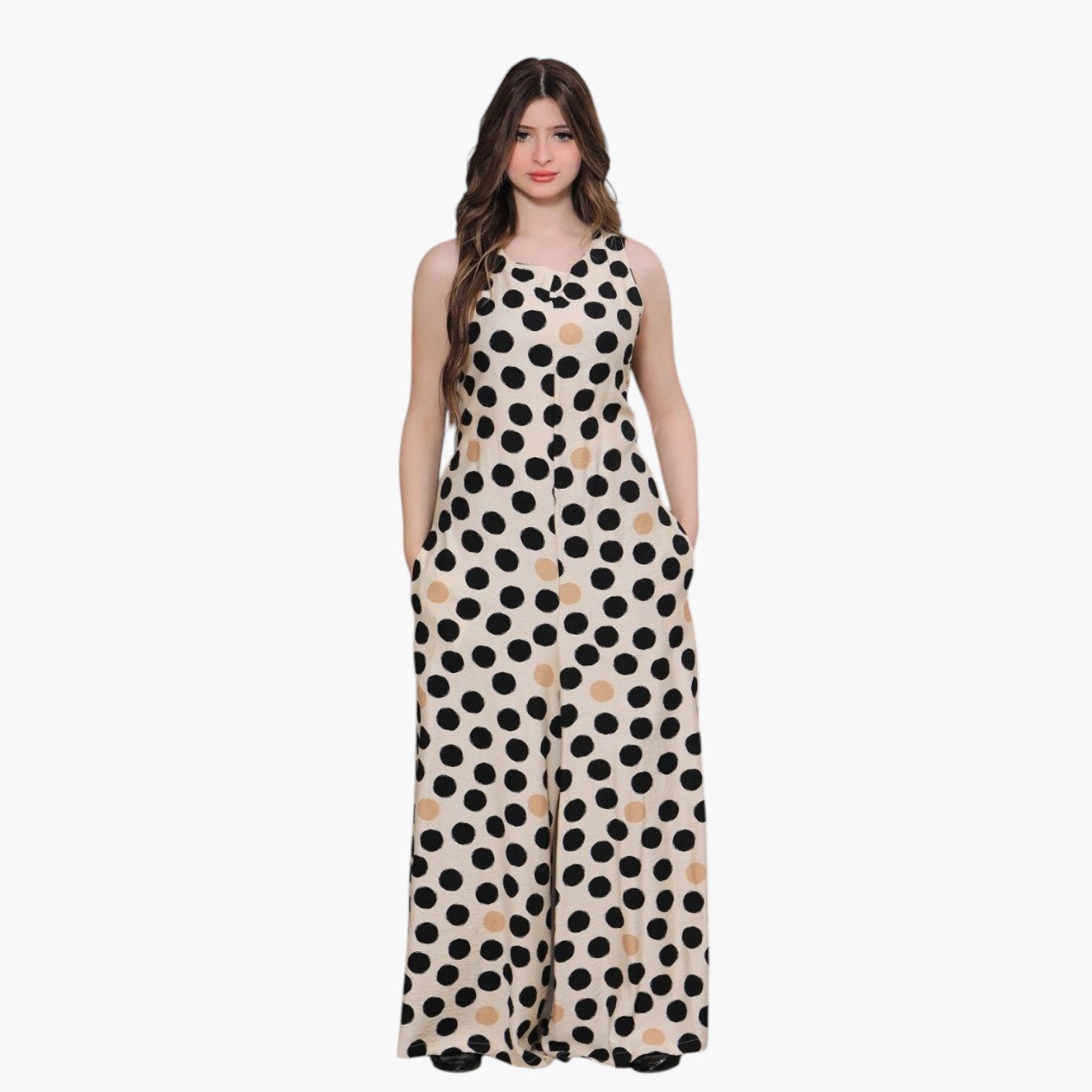 جمبسوت نسائي واسع منقط بتصميم أنيق بدون أكمام