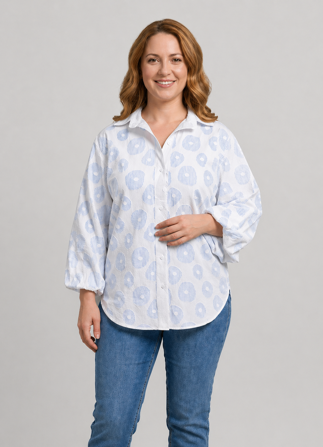 قميص أبيض مخطط بنقوش زهرية تجريدية