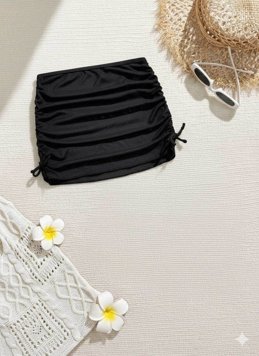 تنورة سوداء ملفوفة بغطاء جانبي برباط بلون سادة قصيرة للبنات من Shein