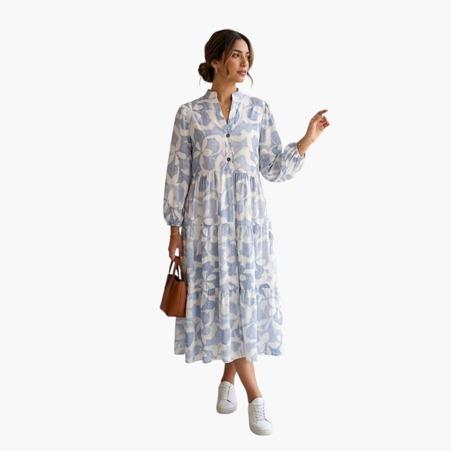 فستان نسائي مزهر أنيق بأزرار أمامية – ستايل رومانسي كاجوال
