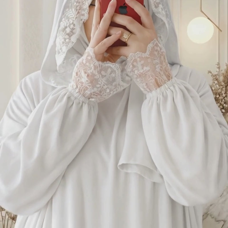 إسدال قماش كتان اسباني معرج مزود ب كابيشو وطرحه مع دانتيل بالكمام والكابيشو