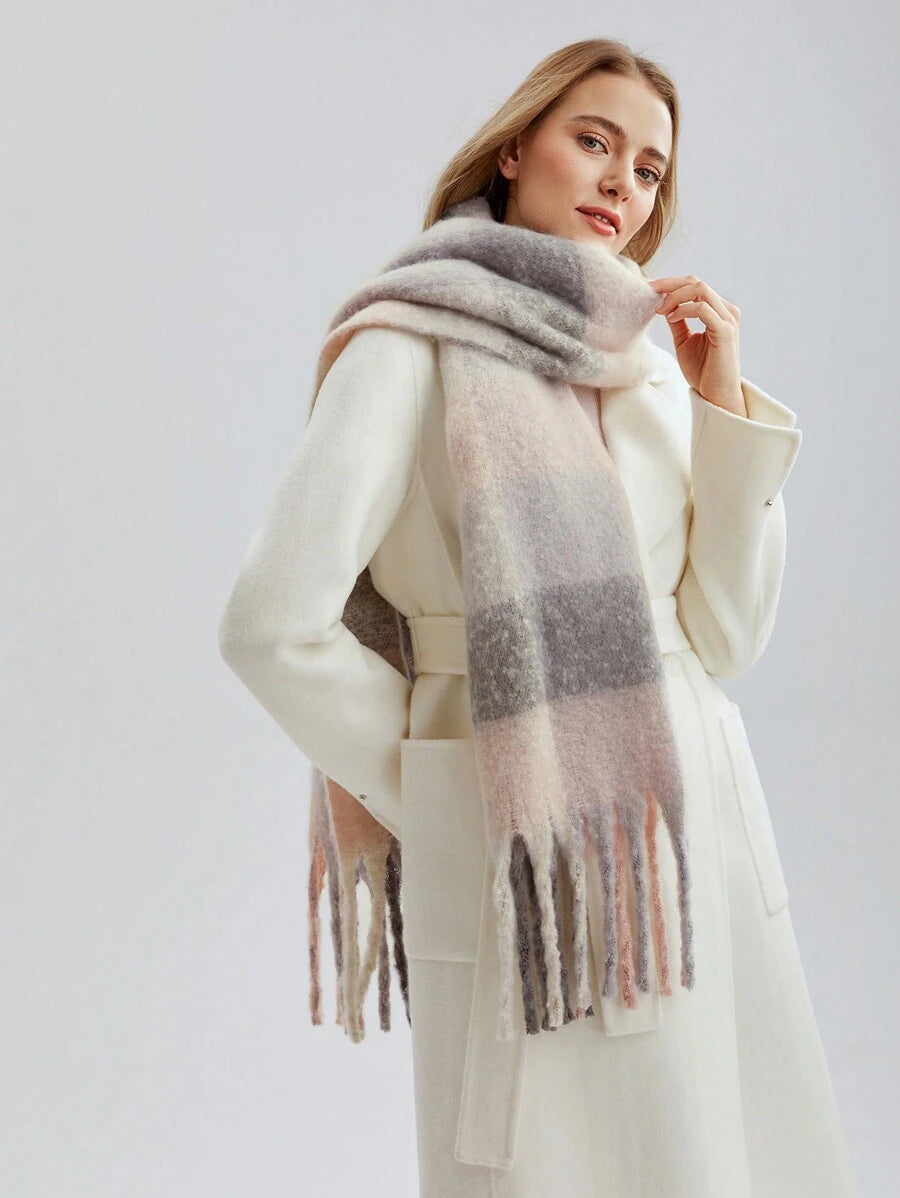 MOTF شال/وشاح موديل أنيق مخطط ملون من البوليستر – تصميم Plaid موضة