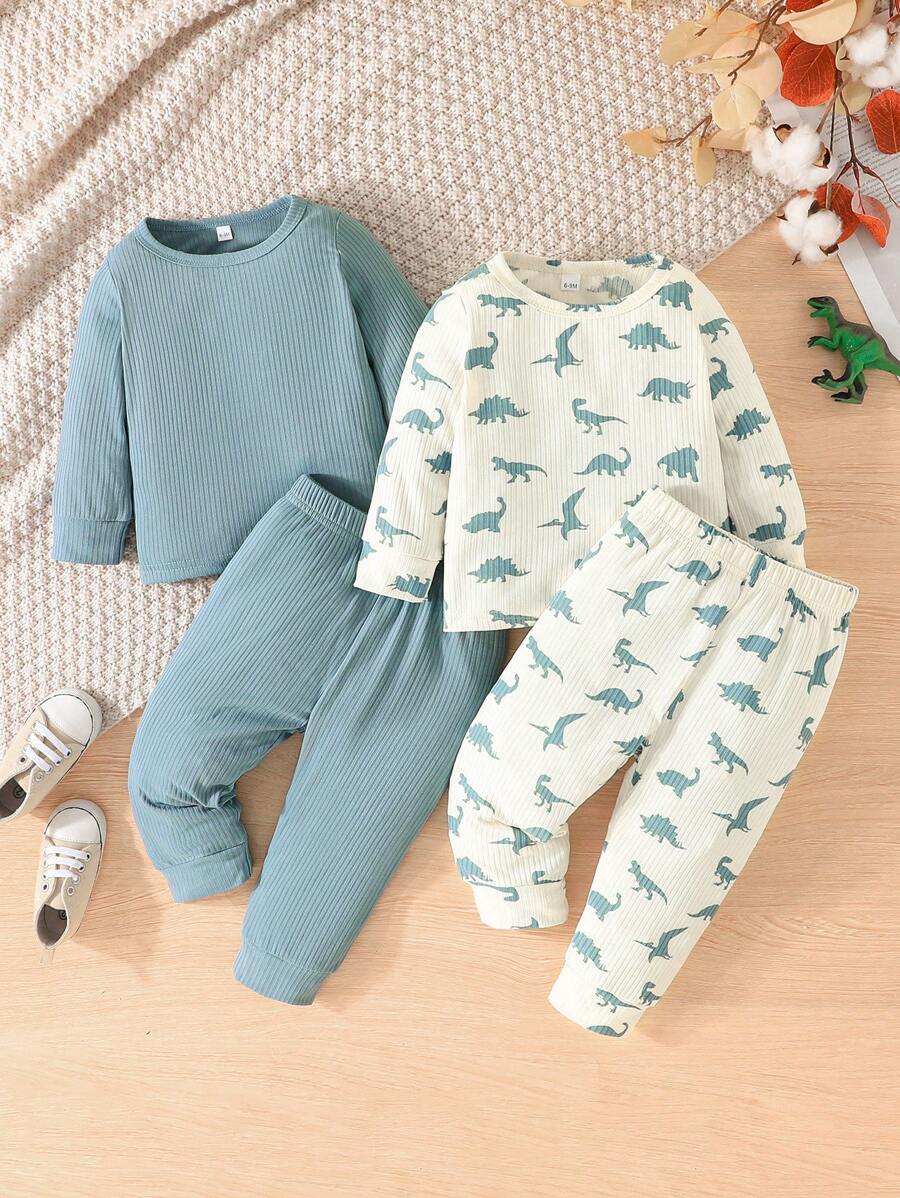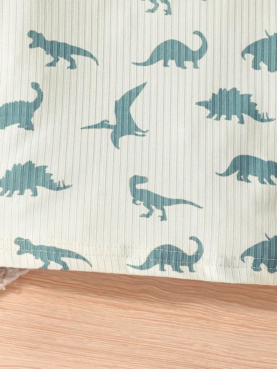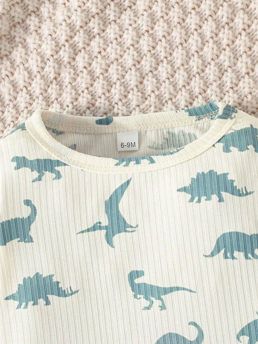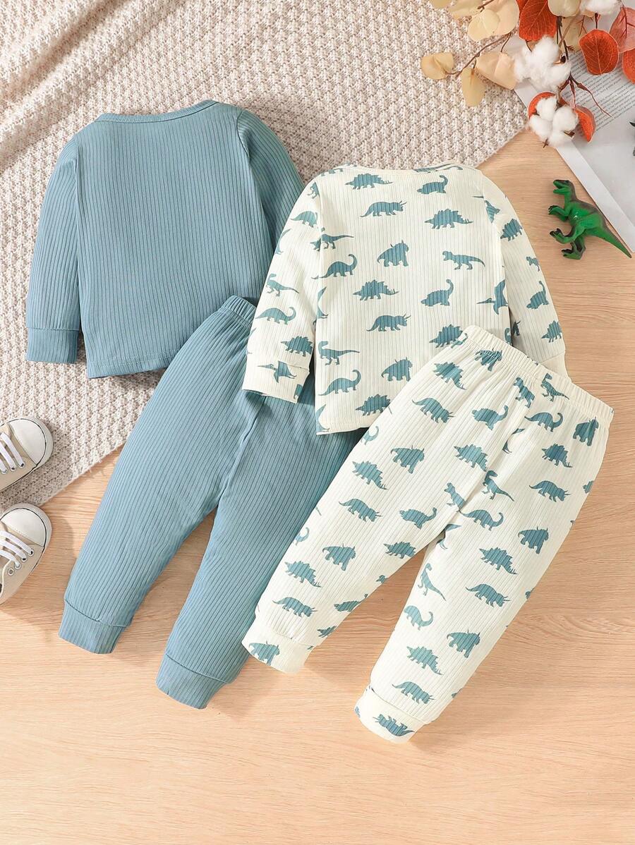 2بدلة فضفاضة قطعتين كاجوال بأكمام طويلة وبنطلون بطبعة ديناصور/لون واحد