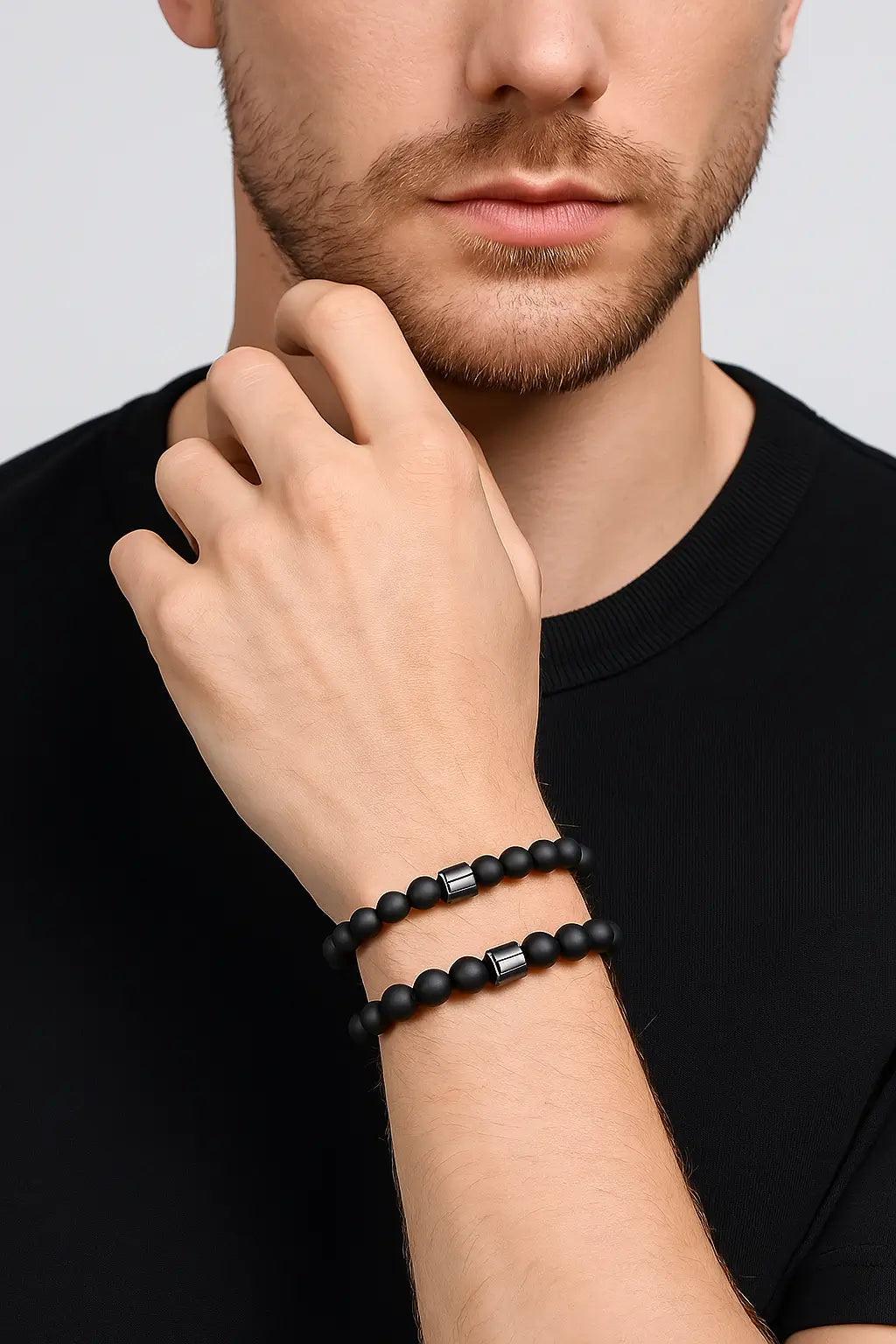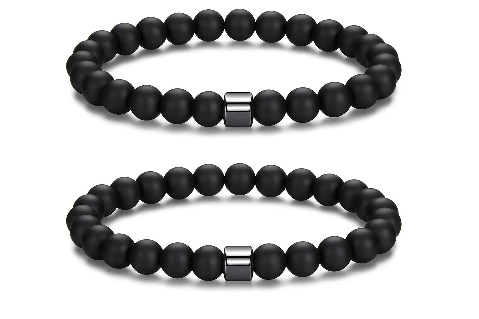 2قطعه من سوار مزدوج من خرز العقيق الأسود بتصميم بسيط وأنيق