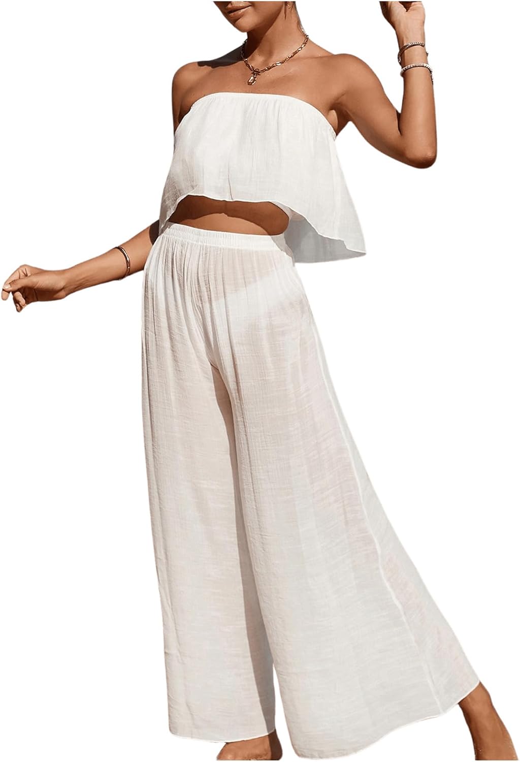 بلوزة بدون حمالات مع بنطلون واسع الساق بلون سادة من ڤي كاي – شي إن