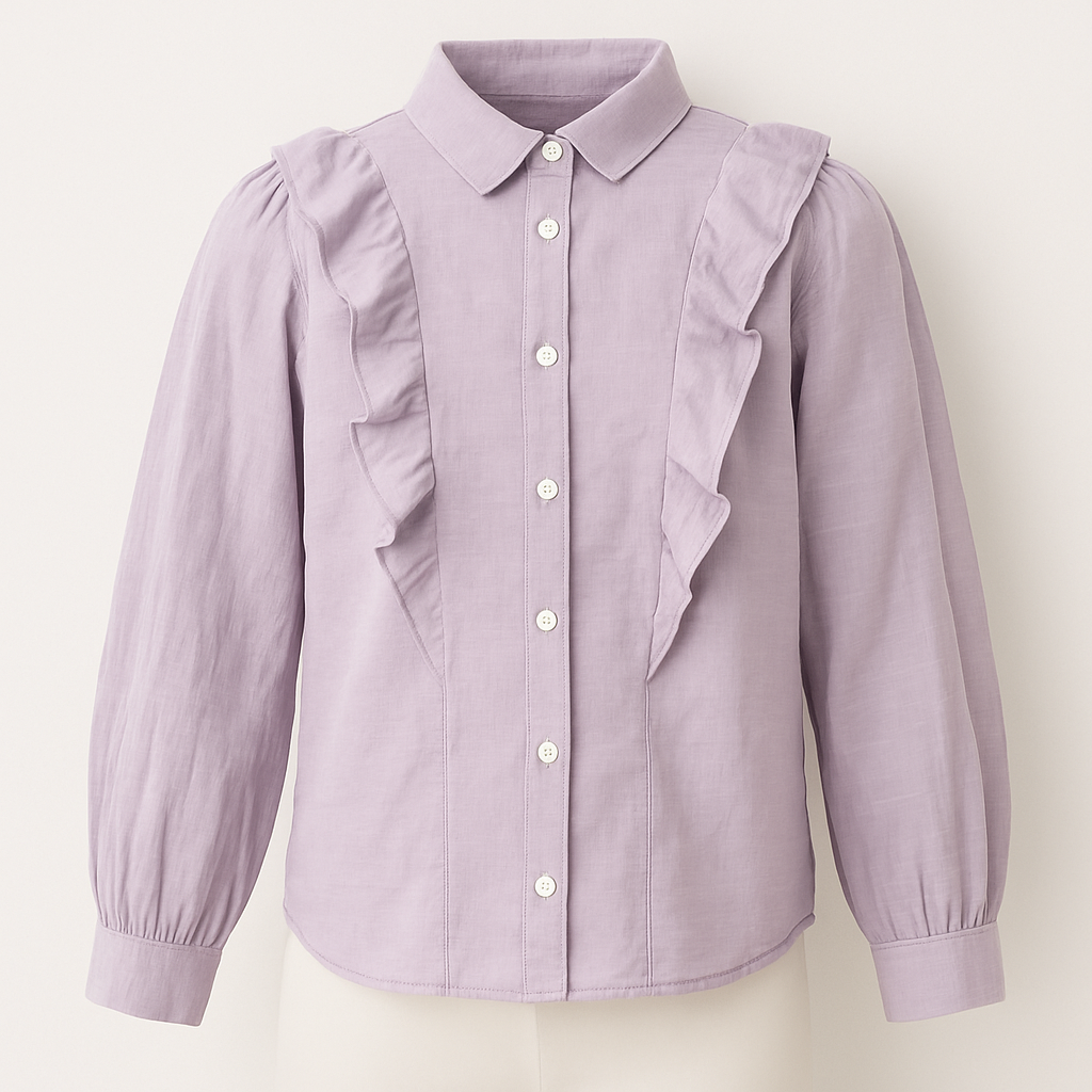 بلوزة بناتي بأكمام طويلة وياقة مطوية