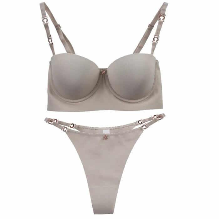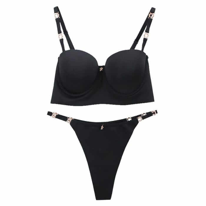 طقم حمالة صدر سلكية وملابس داخلية بلون سادة بسيط