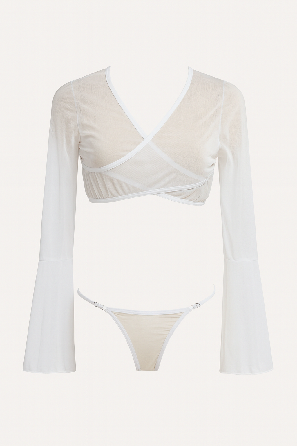 طقم نسائي مكون من قطعتين بلون أبيض بتصميم شبكي متباين