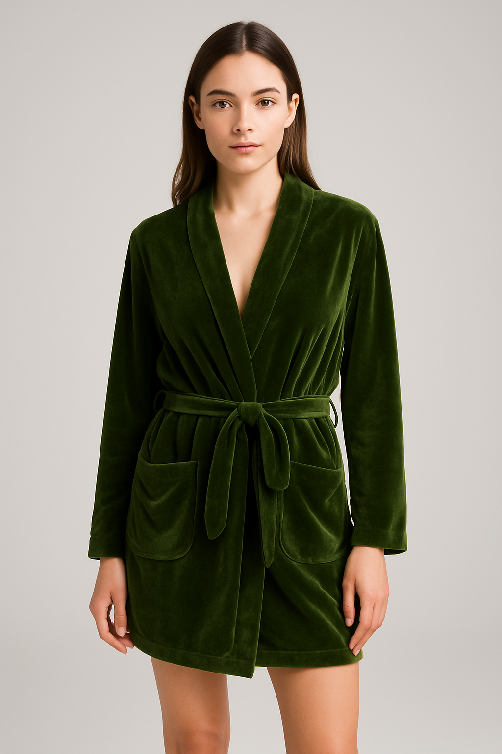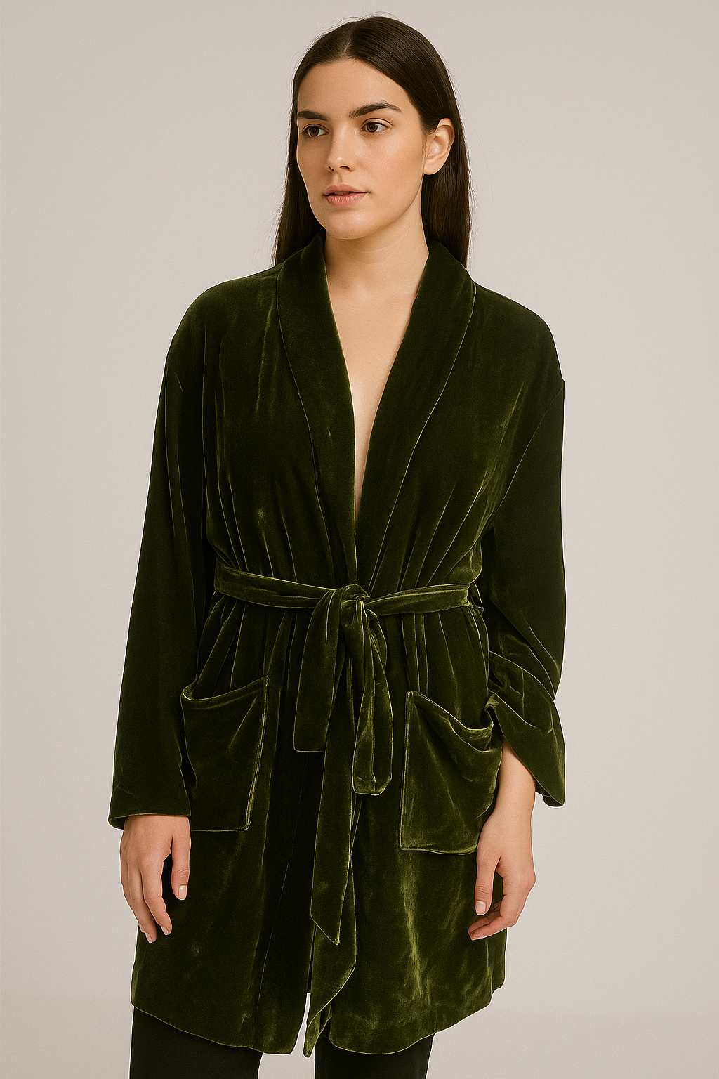 روب نسائي فاخر أنيق بياقة على شكل V مع حزام خصر – لمسة دافئة لخريف أنيق