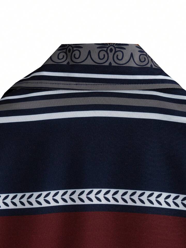القميص المخطّط ده شكله رايق وبسيط، والخطوط بتديّه شكل شيك من غير ما يبقى لافت زيادة 👌. خامته خفيفة ومريحة على الجسم، وبيتنفس كويس، فبينفع يتلبس في اليوم العادي أو خروجة سريعة. قصّته مظبوطة وبيليق مع جينز أو بنطال قماشي بسهولة، وبيعطي شكل مرتب من غير أي مجهود 🔥.