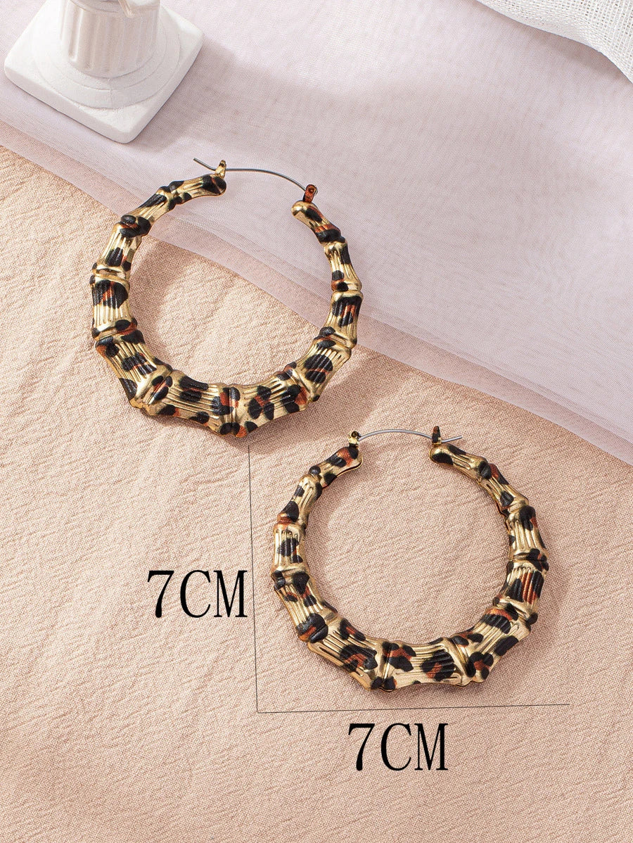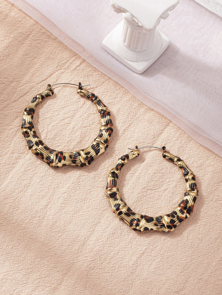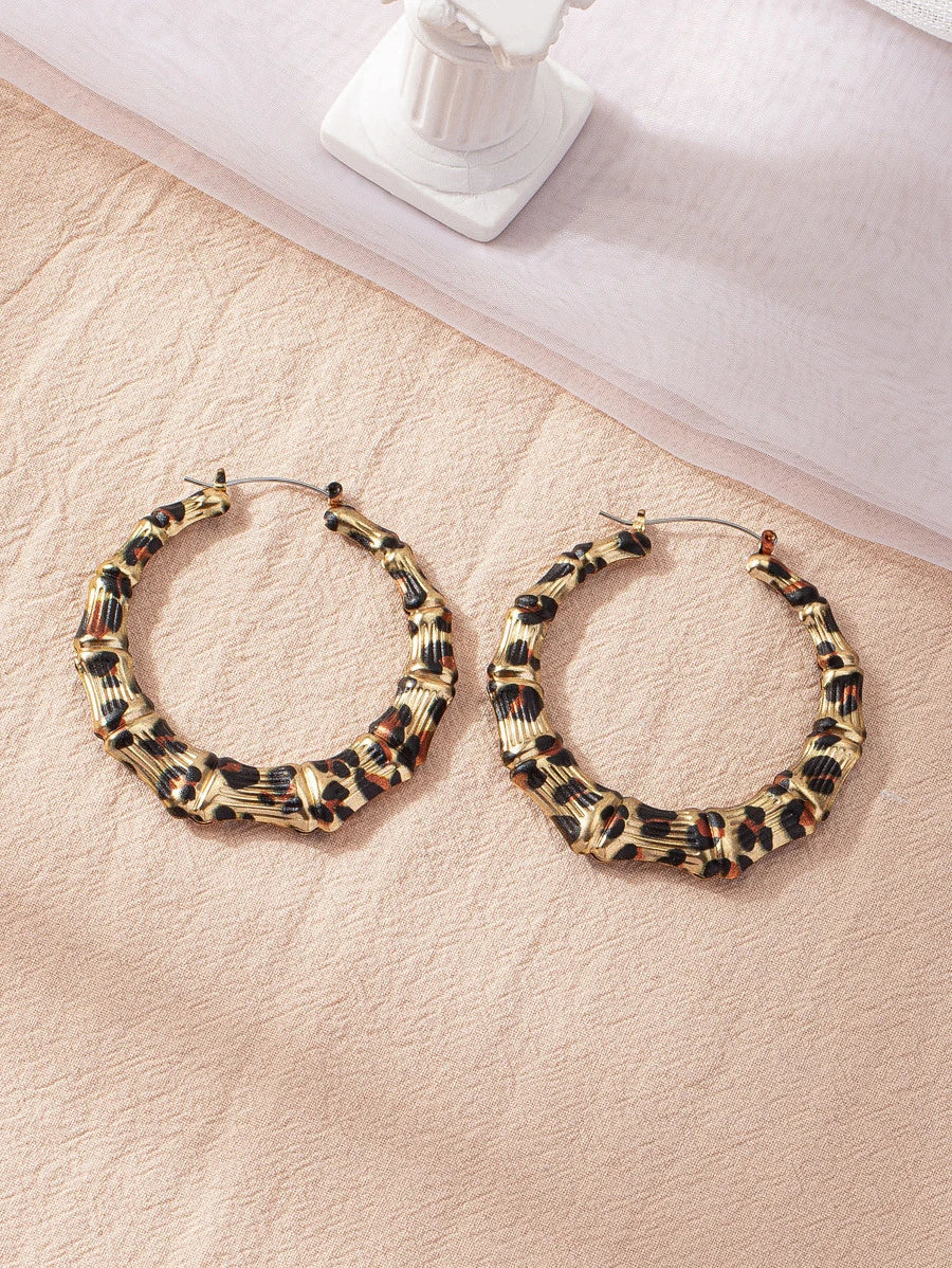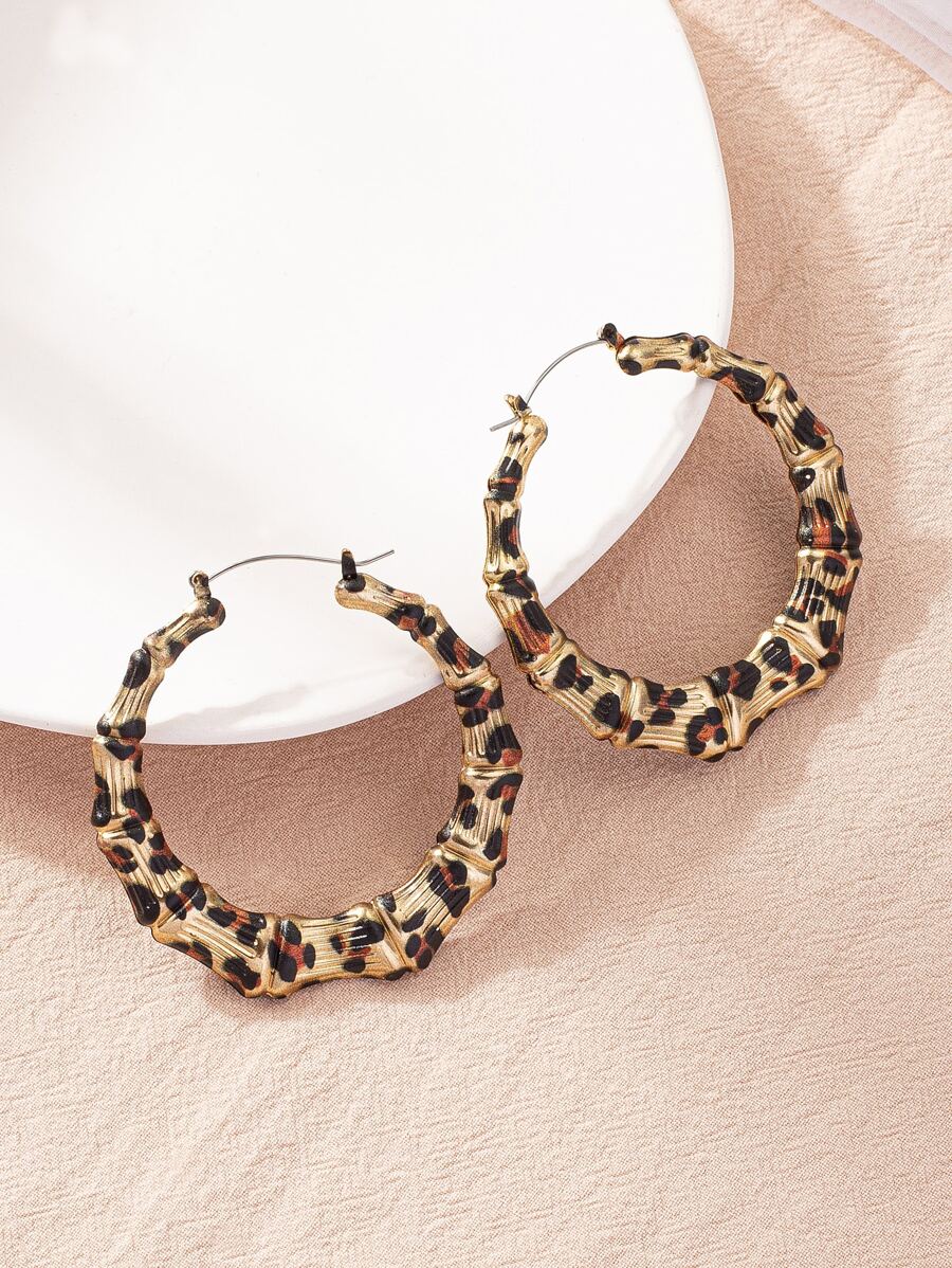 أقراط دائرية من الخيزران بنقشة جلد النمر
