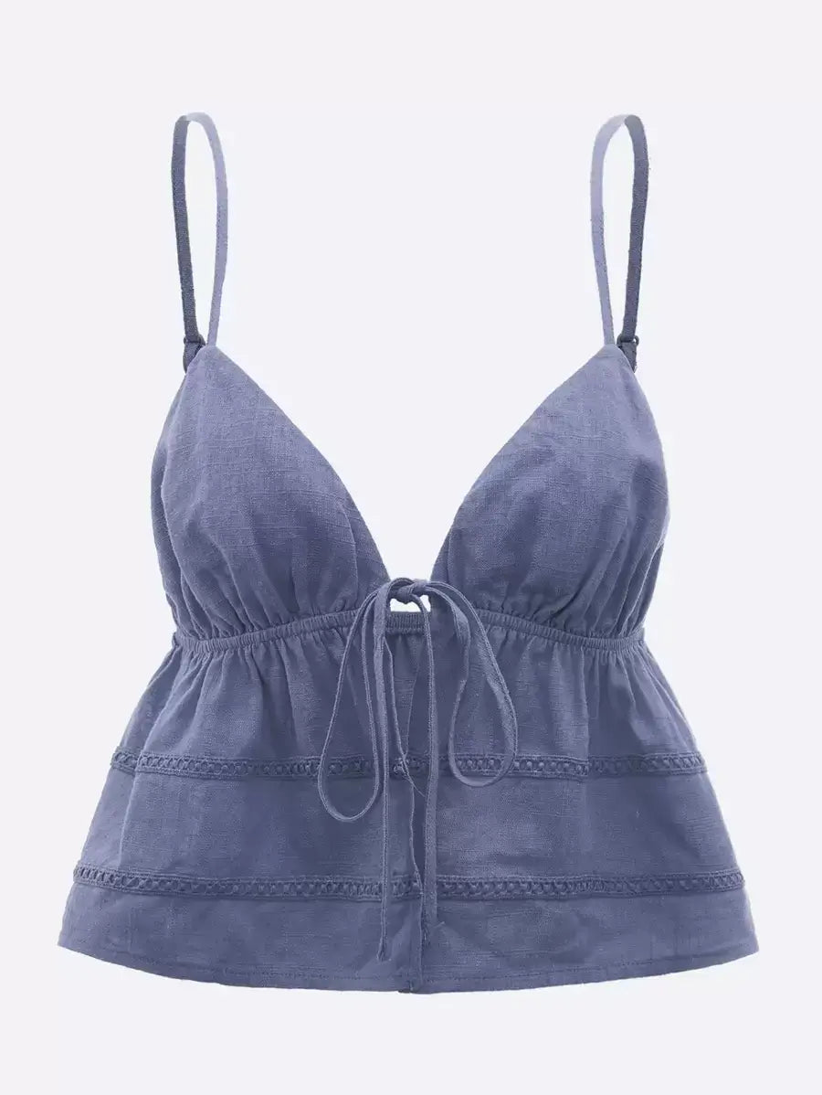 بلوزة كامي سادة برباط أمامي من SHEIN ICON