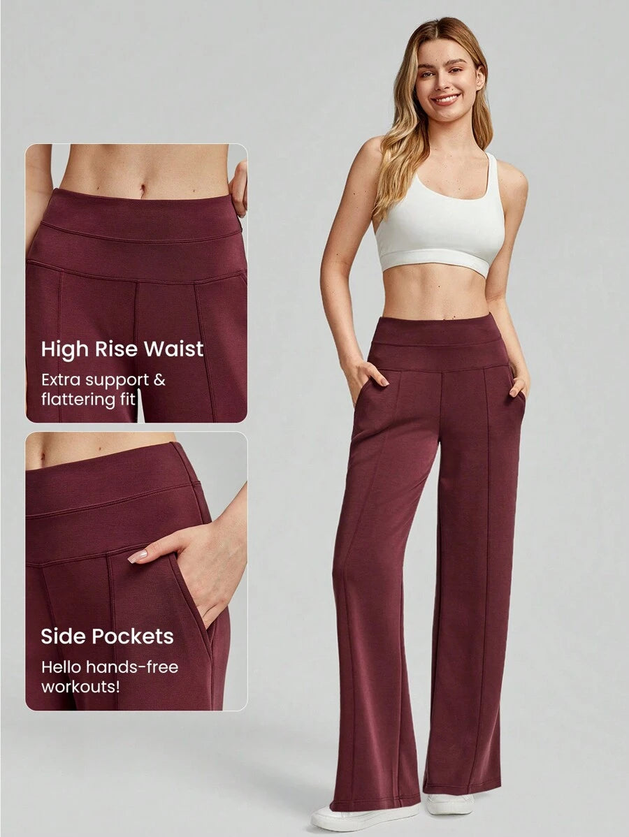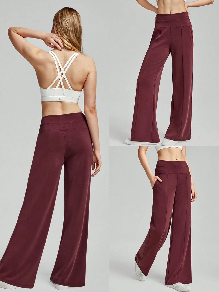 بنطال GLOWMODE واسع عالي الخصر بملمس حريري – بجيوب جانبية