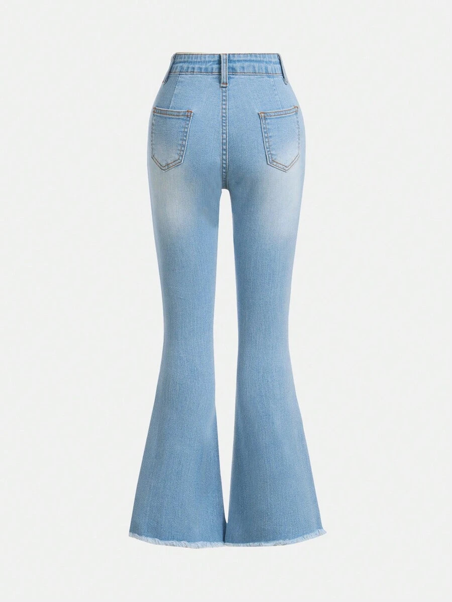 بنطلون جينز بلون أزرق فاتح بتصميم خصر عالٍ وقَصّة جرس من الأسفل تضيف مظهرًا أنثويًا عصريًا. يتميز بخامة مرنة مريحة تمنح حرية في الحركة وشكلًا متناسقًا للقوام. مناسب للتنسيق مع بلوزات أو توب بسيط لإطلالة كاجوال متوازنة.