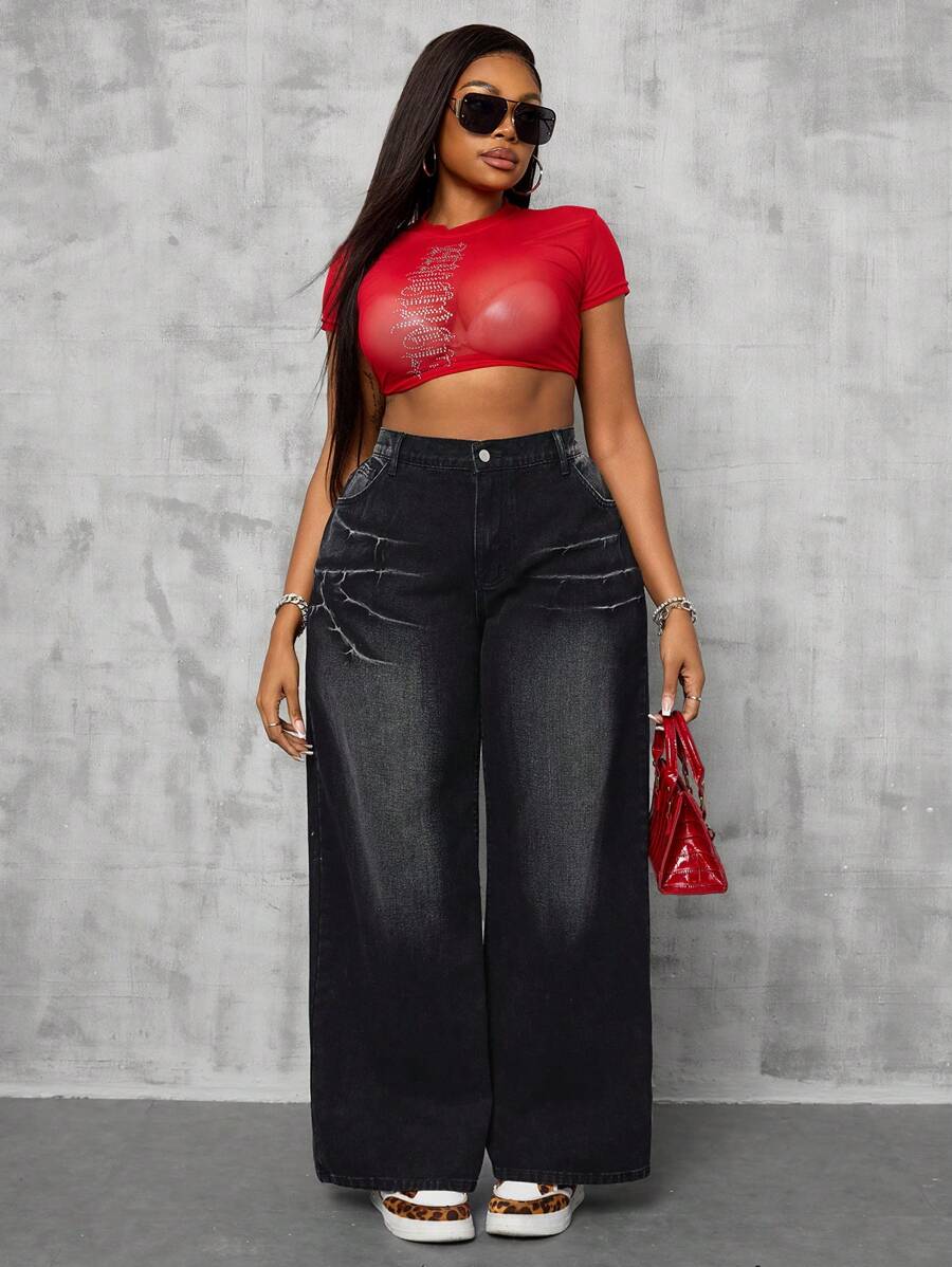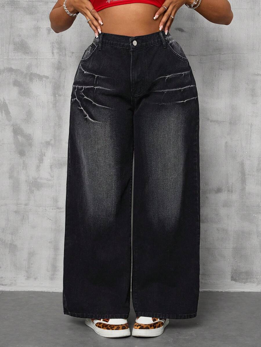 بنطلون جينز بتصميم عصري واسع يمنح حرية في الحركة ومظهر مريح. يتميز بدرجة لون داكنة مع تدرجات خفيفة تضيف لمسة شبابية أنيقة، وقصة عالية الخصر تبرز الشكل بطريقة متوازنة. خامته قوية وناعمة في الوقت نفسه، مناسبة للإطلالات اليومية أو التنسيقات الكاجوال البسيطة.