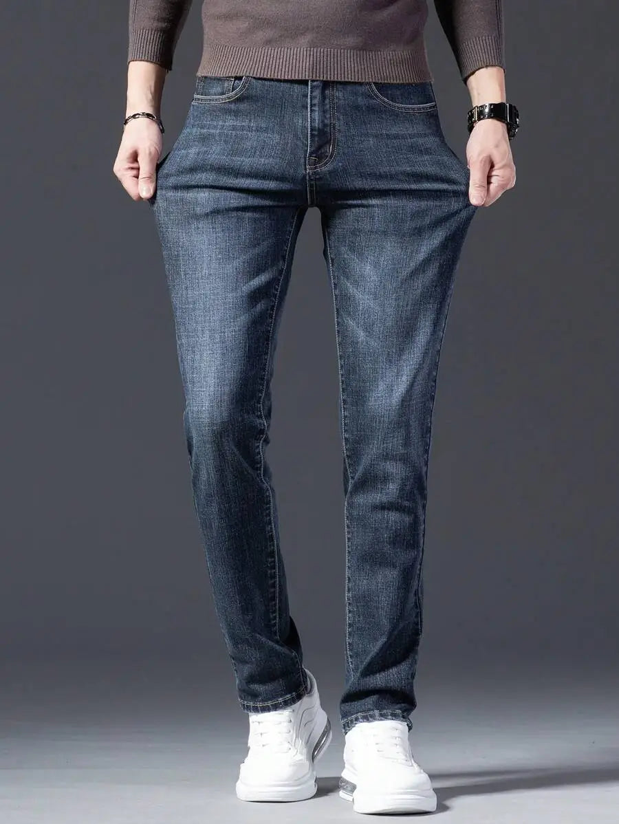 بنطلون جينز رجالي كاجوال مريح بقصة مستقيمة من شي إن