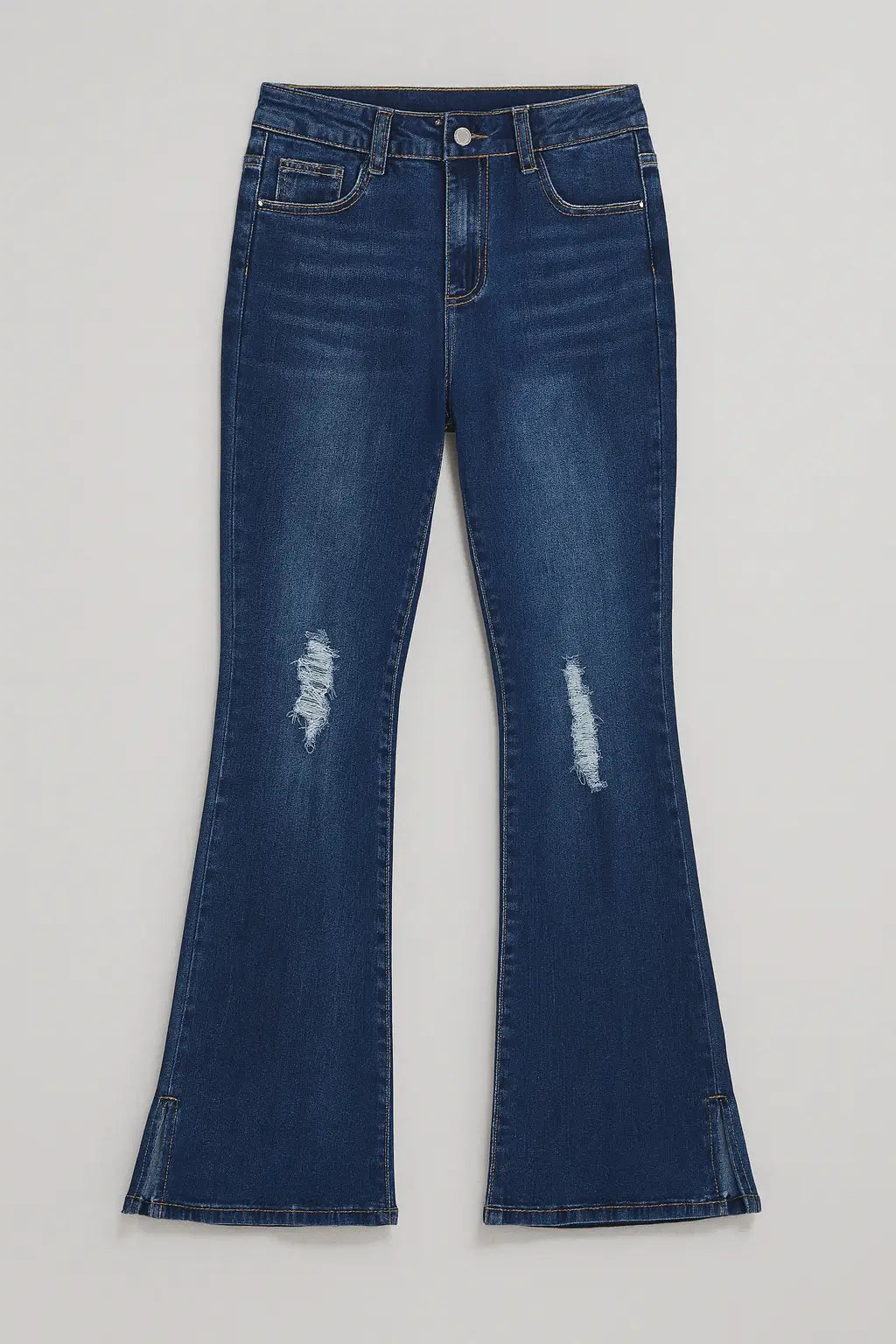 بنطلون جينز أزرق بستايل عصري من Shein، يتميز بتمزيقات على الركبتين وتفتيح خفيف يعطي لمسة شبابية وجذابة. تصميم الساق الواسعة مع الفتحات الجانبية في الأسفل يضيف لمسة من التميز ويجعل البنطلون مناسب للإطلالات اليومية والكاجوال. مصنوع من قماش دنيم متين مع نسبة مطاط خفيفة لضمان راحة وسهولة الحركة طوال اليوم.