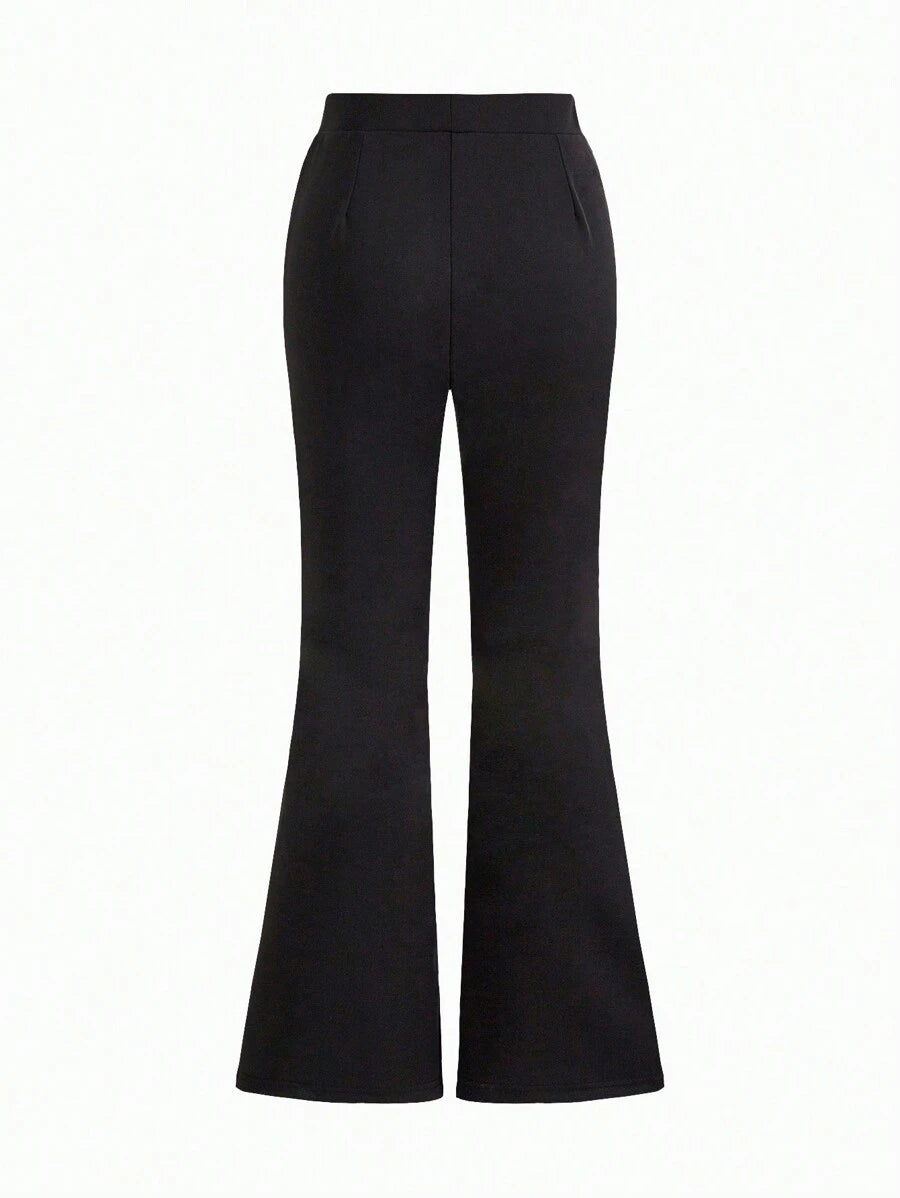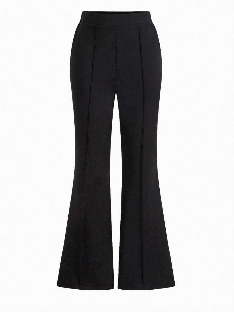 بنطلون RosyDaze الضيّق عند الخصر وواسع من الأسفل، بلون سادة كلاسيكي. مثالي للخريف، يمكن تنسيقه بسهولة مع بلوزات كاجوال أو قمصان رسمية لإطلالة مريحة وأنيقة طوال اليوم. ✨