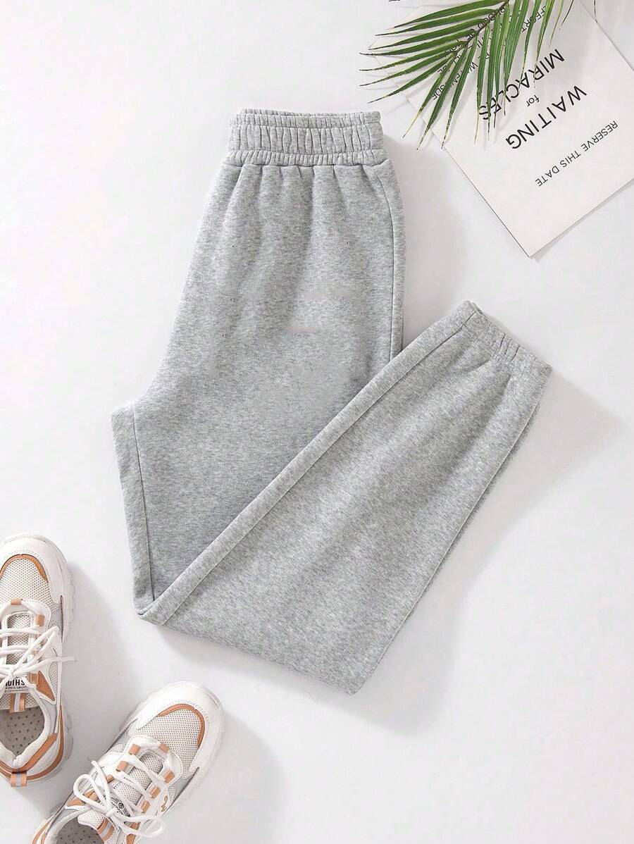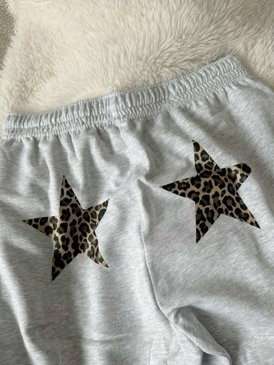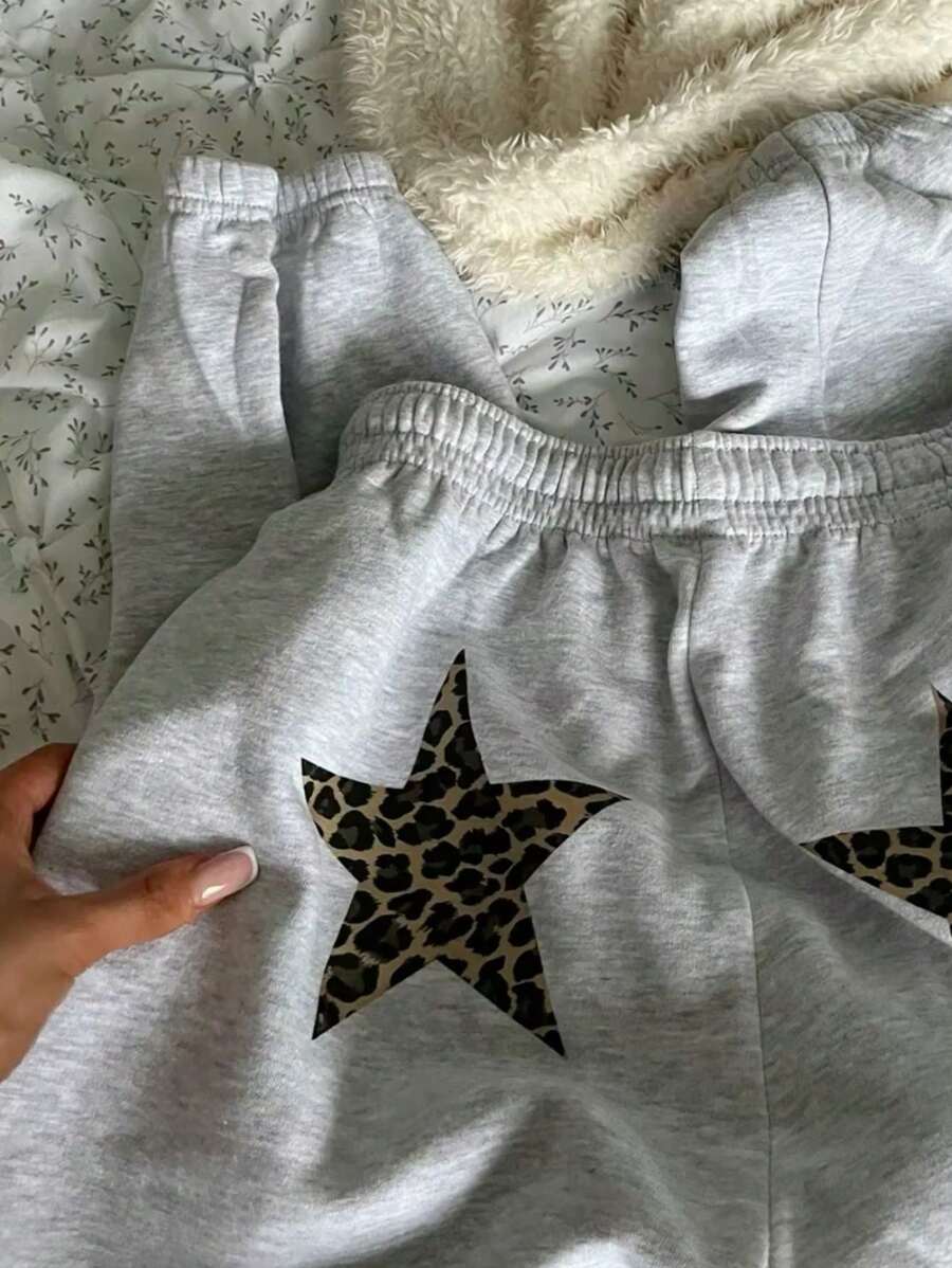 بنطلون رياضي رمادي فاتح من INAWLY Y2K بطبعة جلد النمر والنجوم من Shein