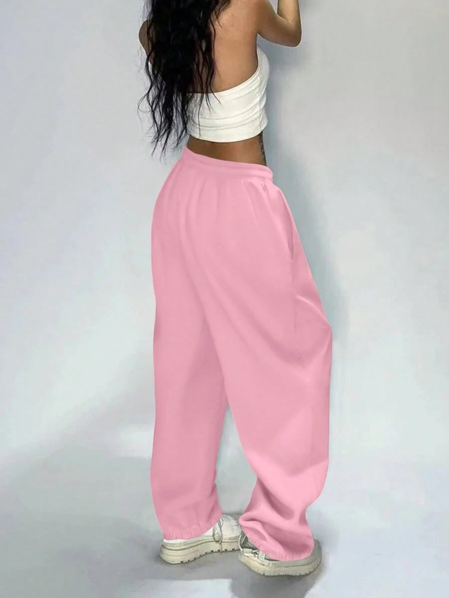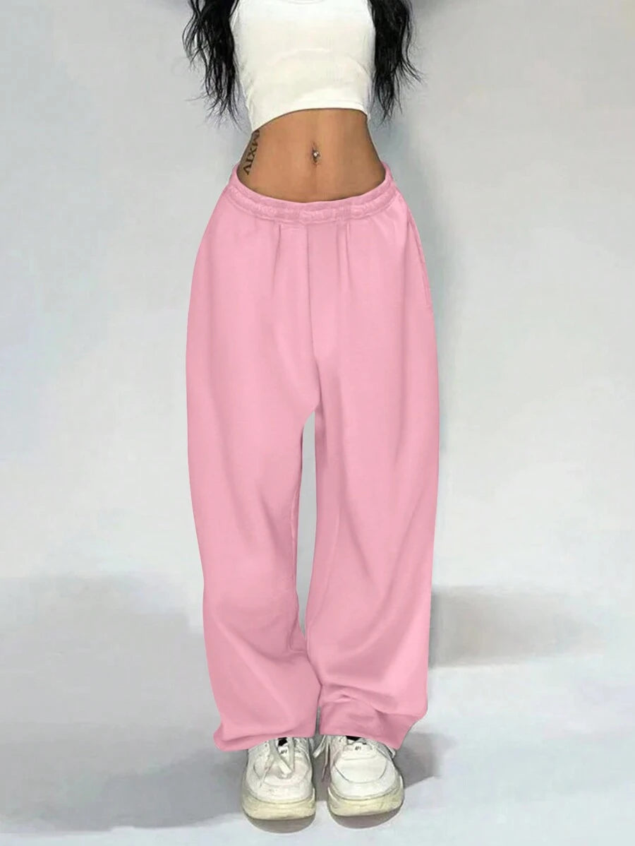 بنطلون رياضي فضفاض واسع الساق بخصر مطاطي بلون سادة من INAWLY للنساء، ملابس تخرج، ملابس العودة إلى المدرسة، ملابس تخرج، ملابس مدرسية للنساء، ملابس خريفية للعودة إلى المدرسة للنساء