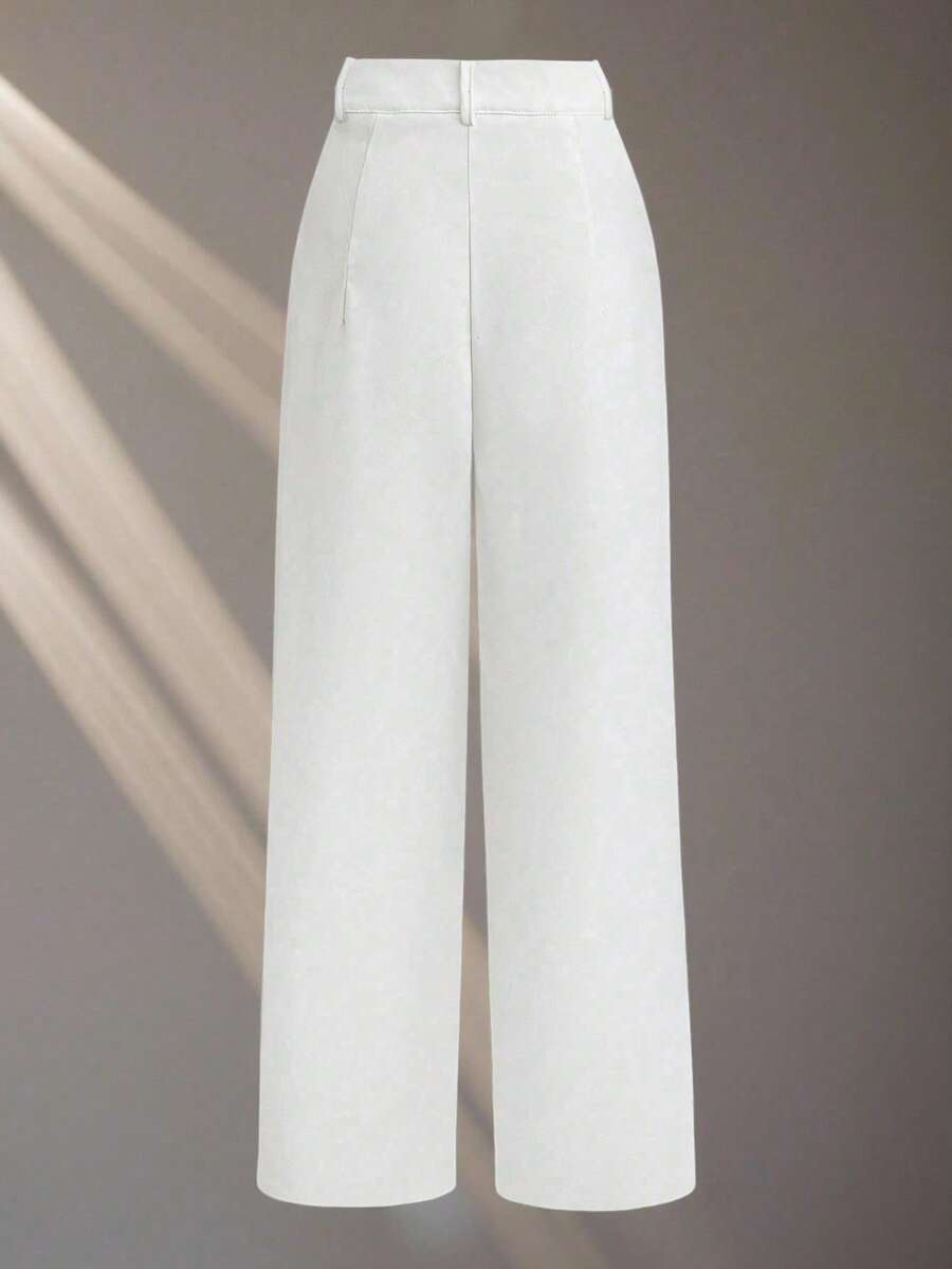بنطلون فرانكليا نسائي أبيض كاجوال/عمل خريفي من القماش للنساء Shein