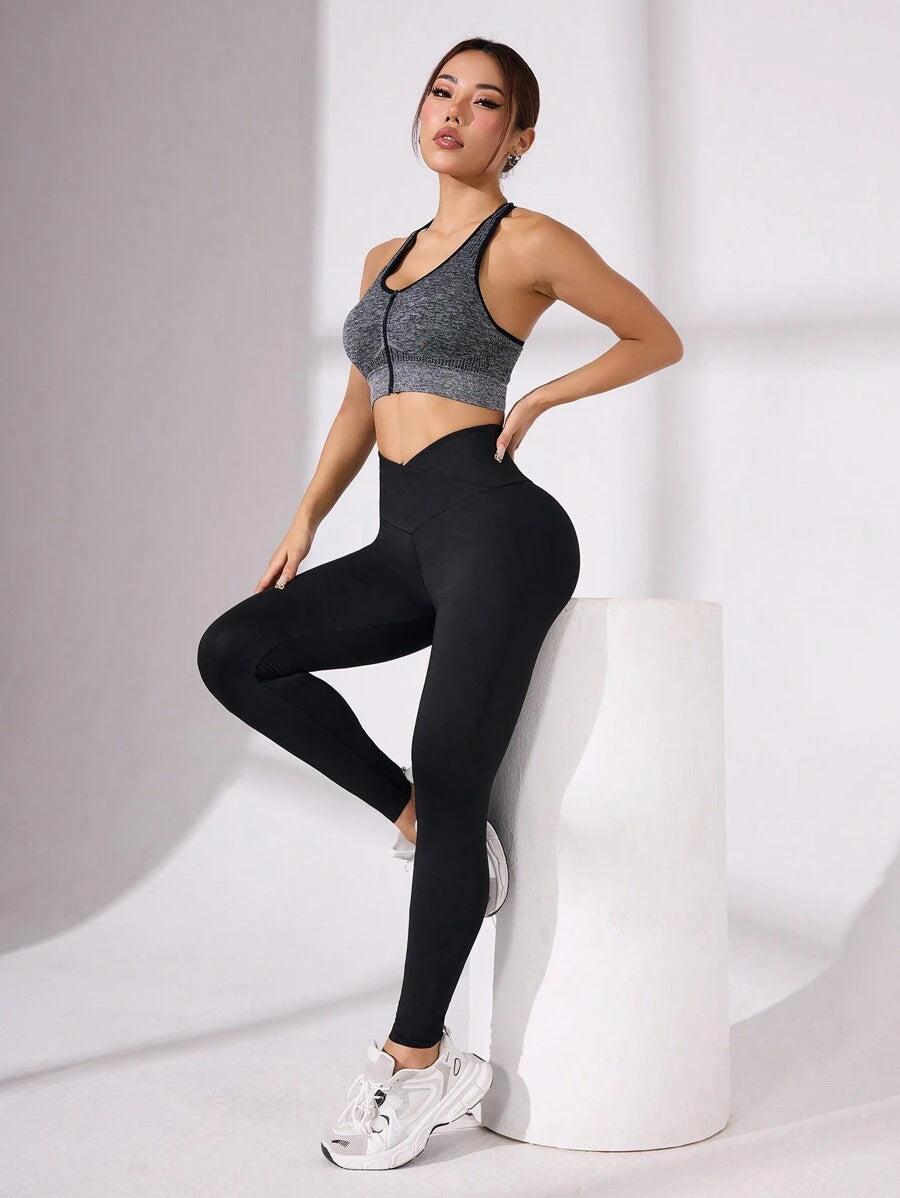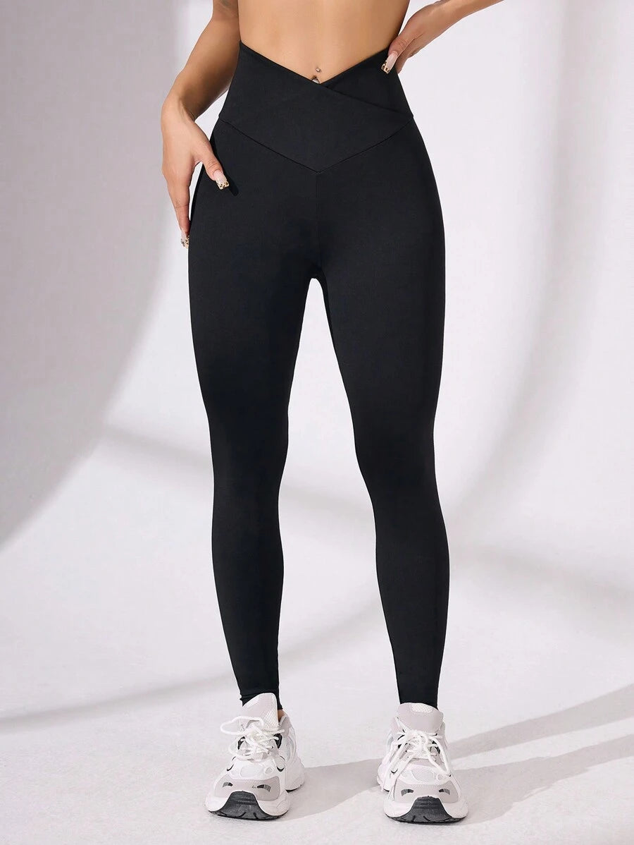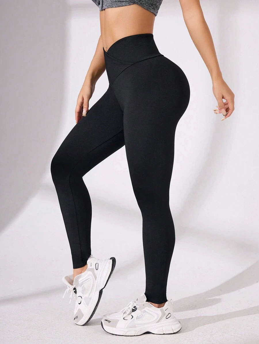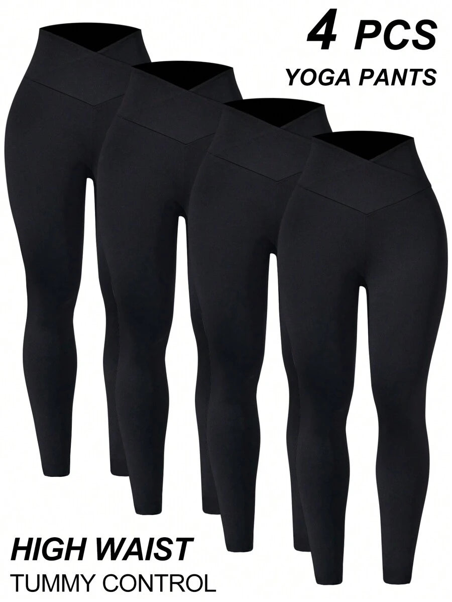 بنطلون يوجا ضيق بتصميم متقاطع من Easithlete، مكون من 4 قطع، للنساء، بلون سادة، كاجوال