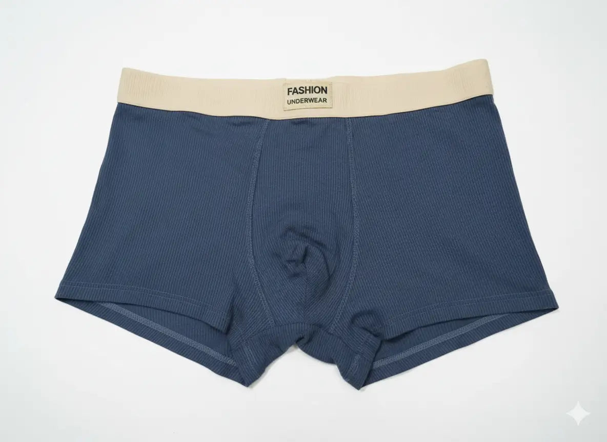 بوكسر رجالي بتصميم بسيط يجمع بين الراحة والخامة الجيدة. يتميز بلون أزرق داكن متناسق مع حزام خصر بيج يمنحه مظهرًا هادئًا وأنيقًا في الوقت نفسه. الخامة القطنية تمنح إحساسًا بالنعومة، مما يجعله مناسبًا للاستخدام اليومي دون أي تعقيد في التصميم.