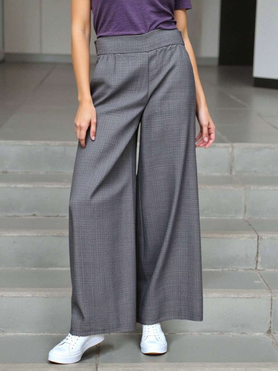 بنطلون بقصّة واسعة من القماش الخفيف، يتميز بتصميم بسيط ولون رمادي محايد. الخصر العالي يعطي مظهر منسق ومريح في اللبس، ما يجعله مناسب للاستخدام اليومي أو المناسبات البسيطة. الخامة ناعمة وتوفر حرية حركة، ويمكن تنسيقه بسهولة مع تيشيرتات أو قمصان مختلفة.
