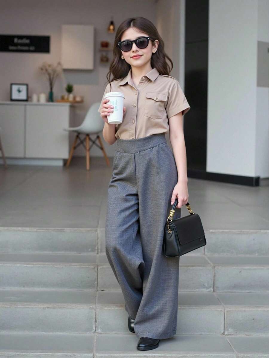 بنطلون بقصّة واسعة من القماش الخفيف من SHEIN للفتيات المراهقات