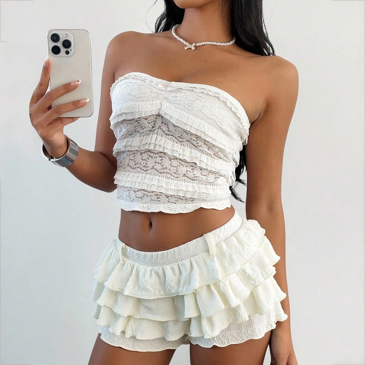 أضيفي لمسة من الرومانسية والأناقة إلى إطلالتك مع توب Aloruh العصري. يتميز بتصميم أنثوي راقٍ يجمع بين تفاصيل الدانتيل الناعمة والفيونكة الصغيرة على الصدر، مع كشاكش جذابة تعزز شكل القوام. قصّته الضيّقة تمنح مظهراً أنيقاً يمكن تنسيقه مع تنورة أو بنطال جينز لإطلالة نهارية أو مسائية ساحرة.