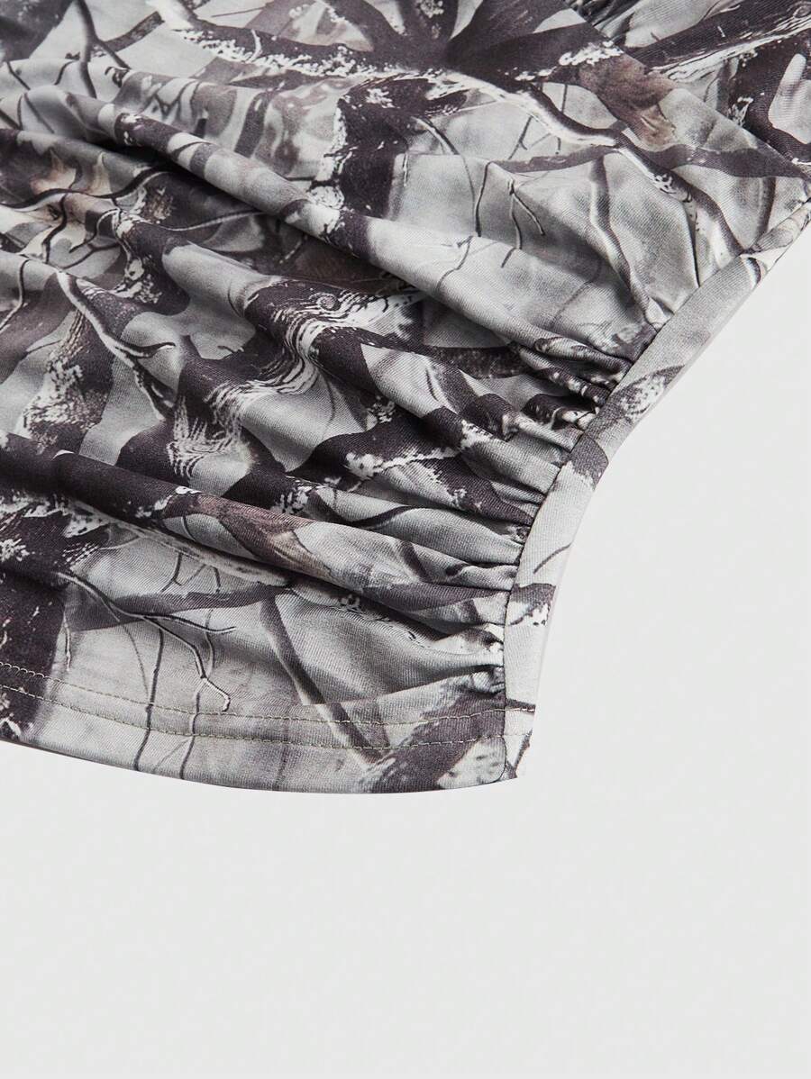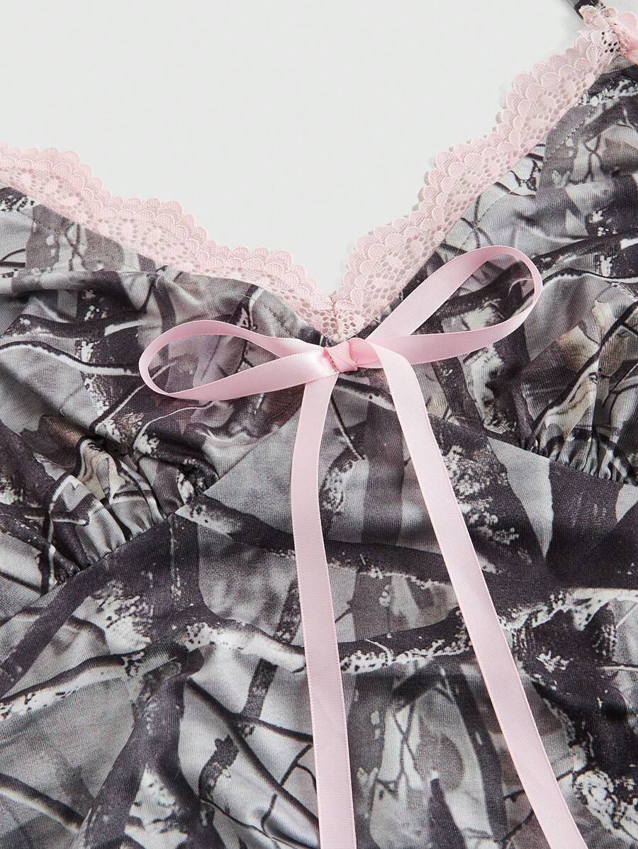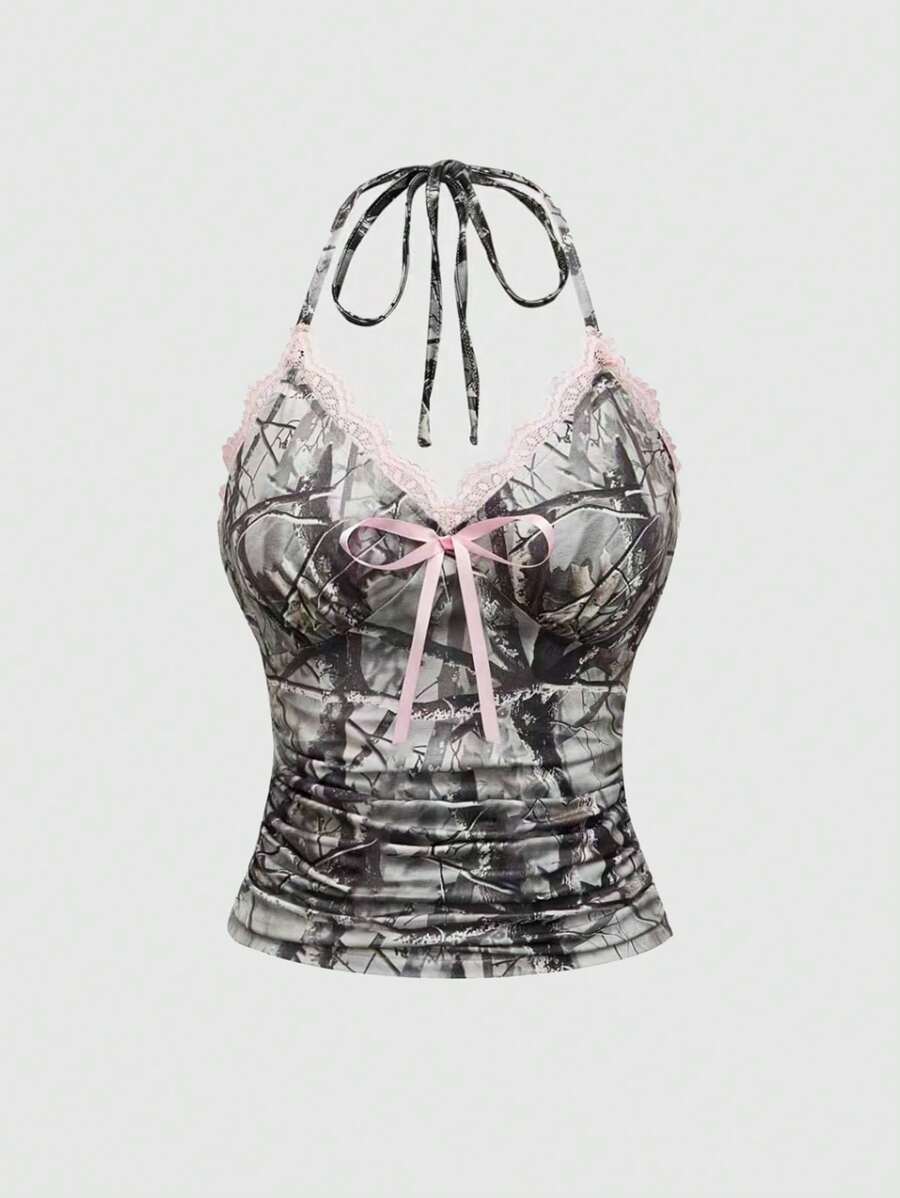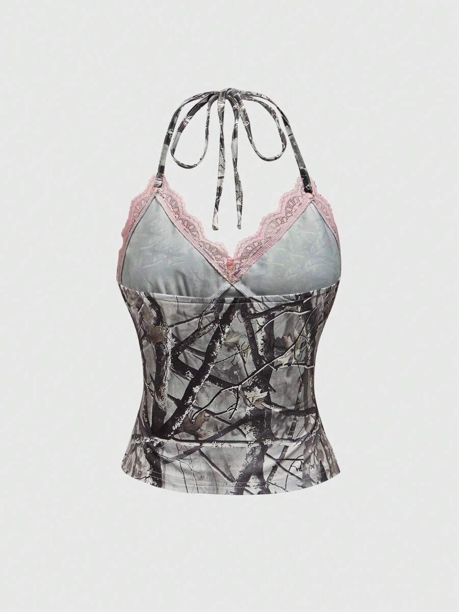 توب نسائي بدون أكمام بتصميم مموه ودانتيل بلون متباين من ROMWE Y2K
