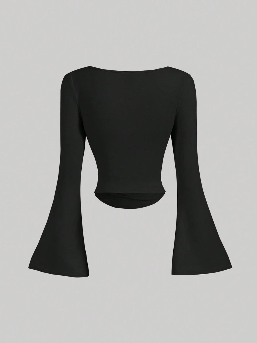 توب نسائي من SHEIN MOD برقبة قارب وأكمام واسعة مع خصر مجمّد