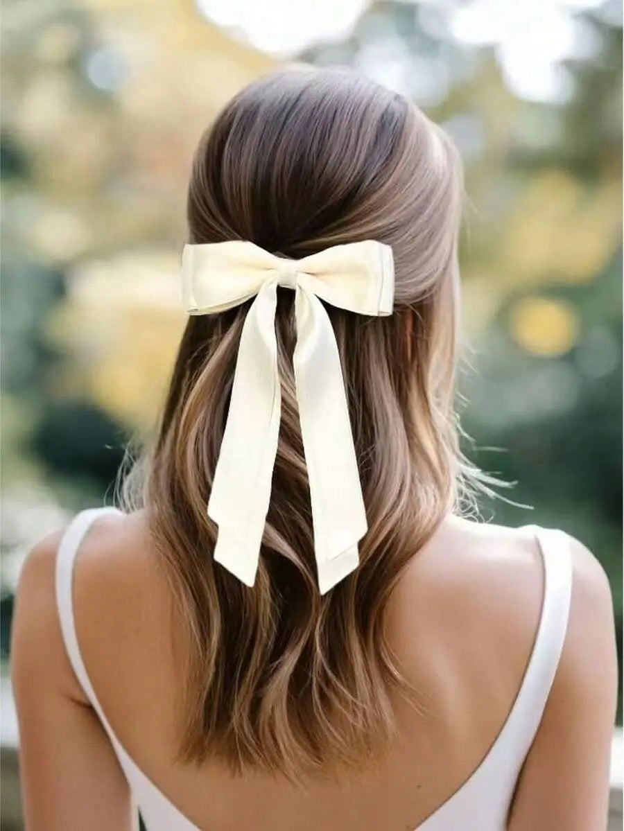 توكه شعر على شكل فيونكة ساتان بلون كريمي أنيق