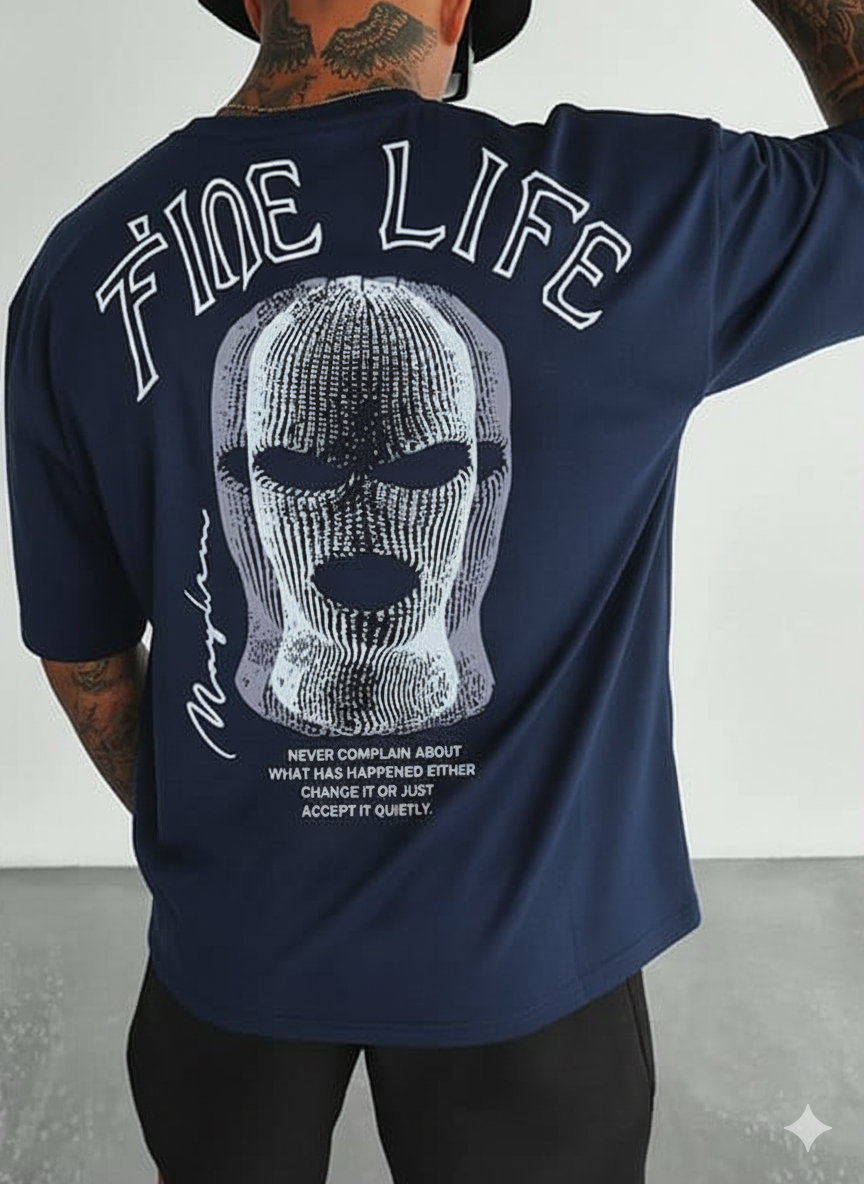 تيشيرت رجالي باللون الكحلي المميز، مصنوع بخامة مريحة وعملية تناسب الاستخدام اليومي. يتميز بتصميم جرافيك بارز على الظهر بطابع شبابي عصري يعكس أسلوب مميز وجرئ، مناسب للخروج الكاجوال والمناسبات غير الرسمية.