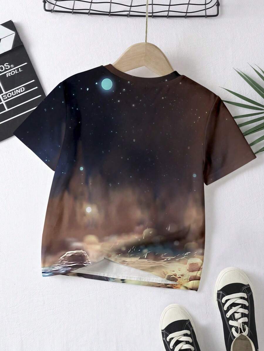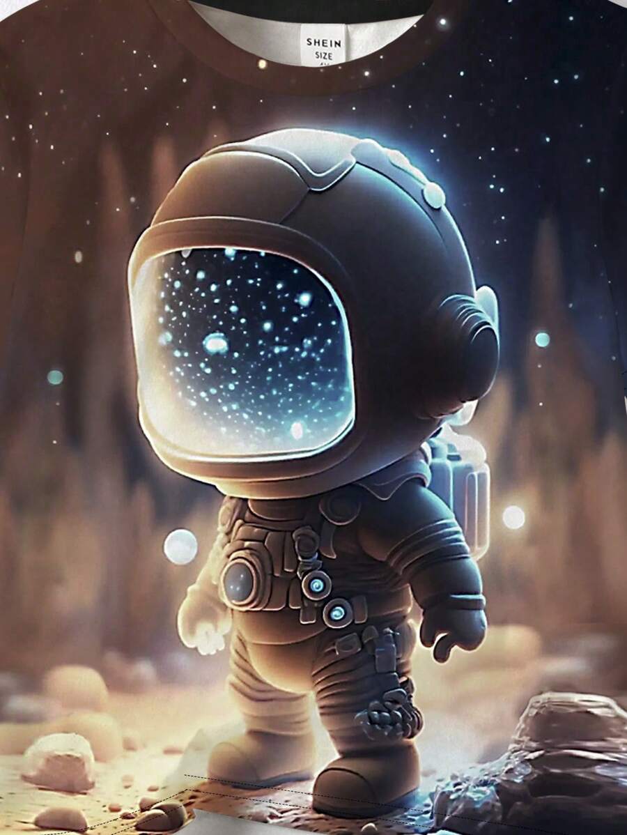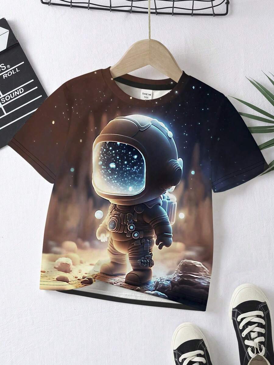 تي شيرت فضفاض بأكمام قصيرة ورقبة مستديرة ورسومات كرتونية بسيطة للصيف للأولاد الصغار مطبوع عليه رائد فضاء من SHEIN