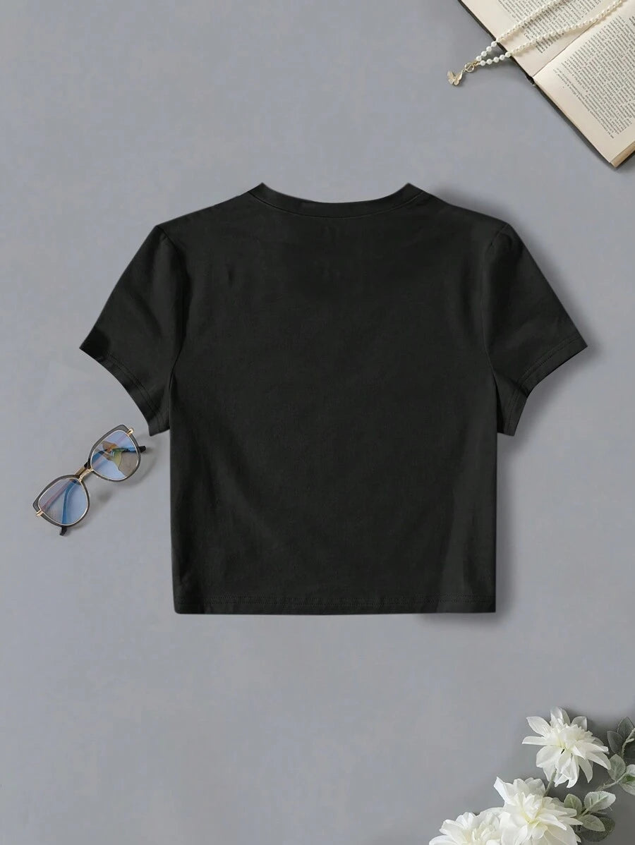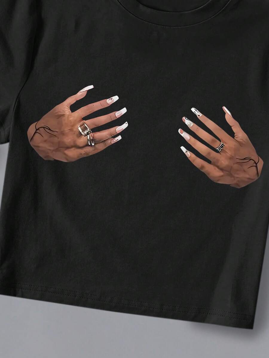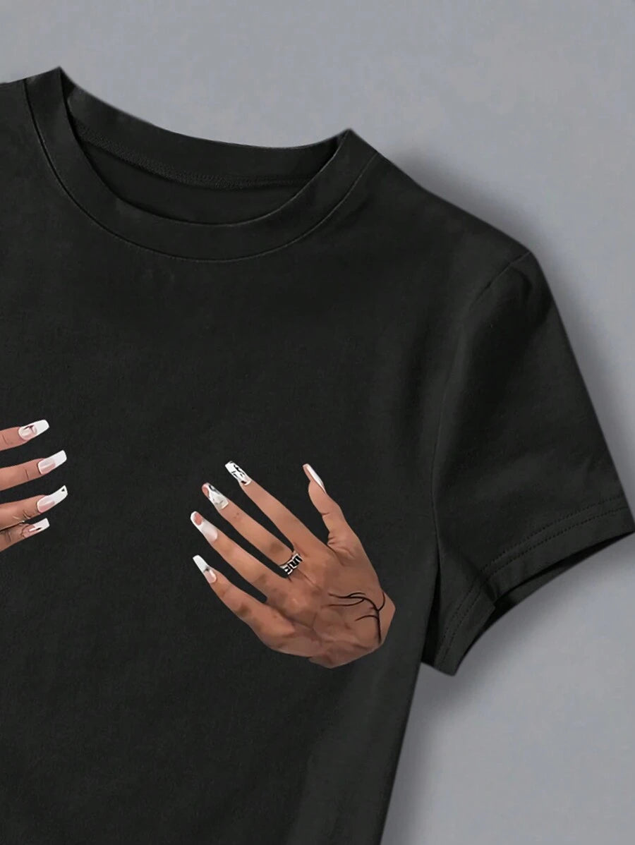 تي شيرت INAWLY نسائي بأكمام قصيرة ورقبة دائرية مطبوع يدويًا