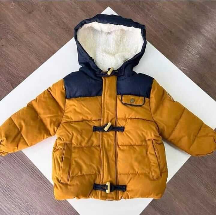 جاكيت شتوي أنيق ومبطن يمنح طفلك الدفء الكامل والراحة في الأجواء الباردة. يتميز بلونه الأصفر الخردلي العصري مع لمسات كحلية جذابة تضفي عليه مظهرًا مميزًا. يأتي بتصميم عملي مزود بغطاء رأس مبطن بالفرو الناعم لحماية إضافية من البرد، إلى جانب إغلاق مزدوج بسحاب داخلي وأزرار خشبية عصرية لمزيد من الأناقة. كما يحتوي على جيوب جانبية واسعة لتدفئة اليدين أو حفظ الأشياء الصغيرة
