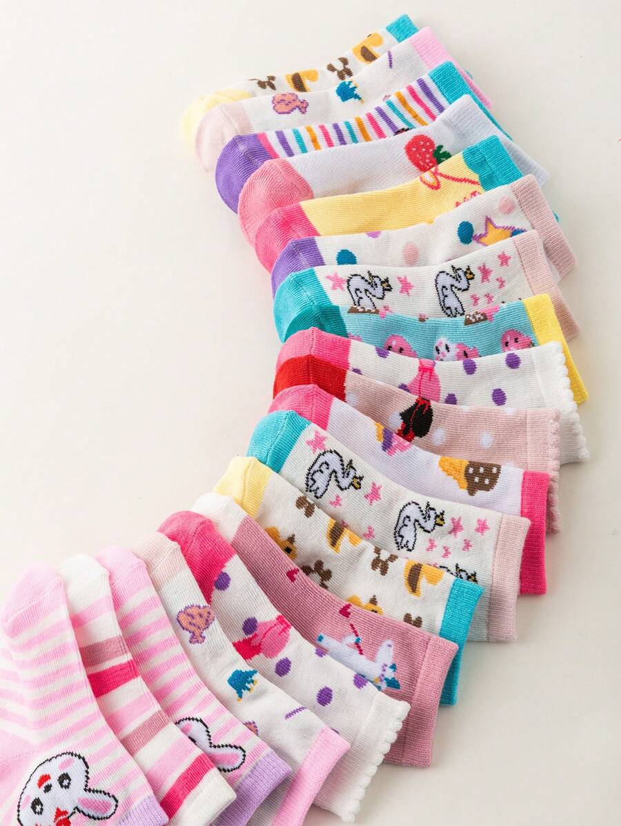 جوارب أطفال لطيفة مطبوعة – قوس ودب وقلب (مجموعة من 10 زوج)