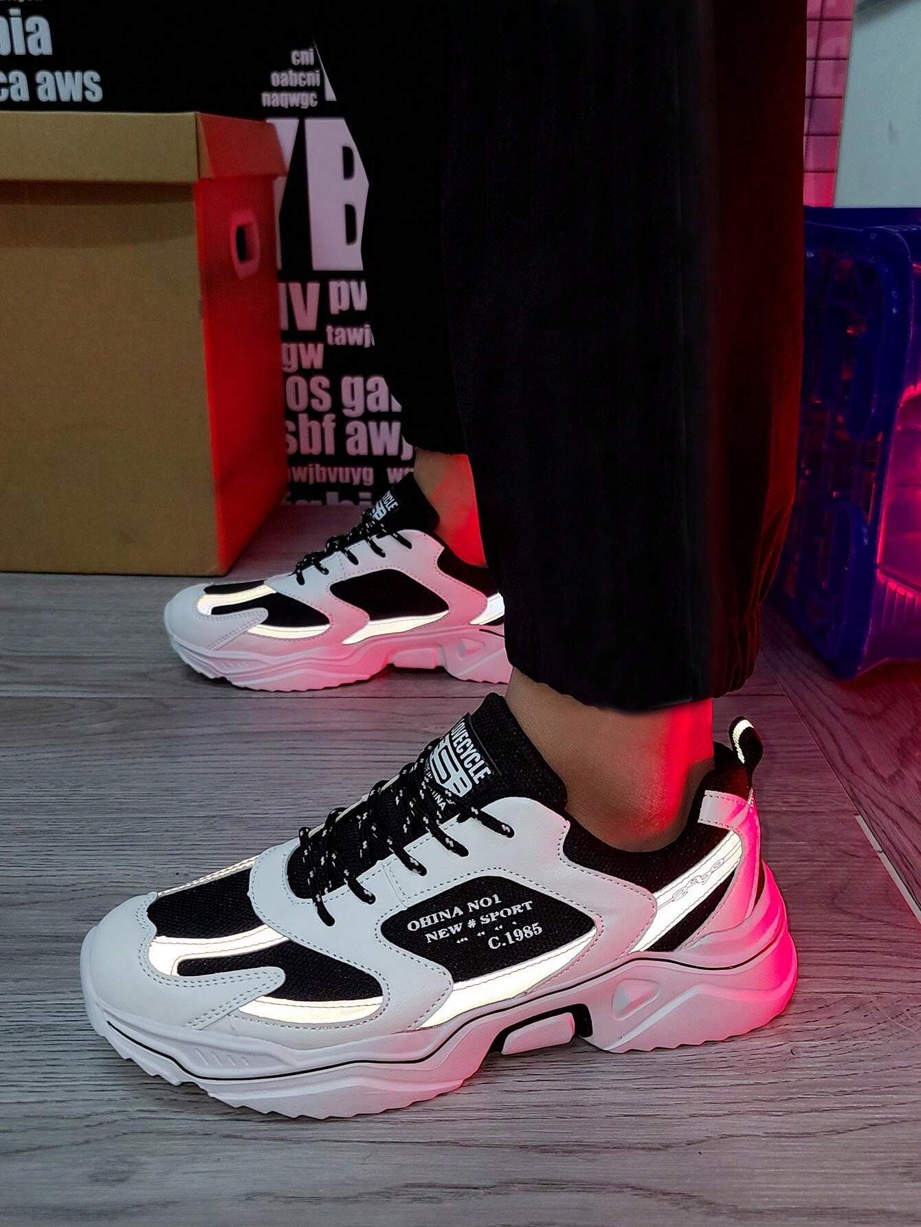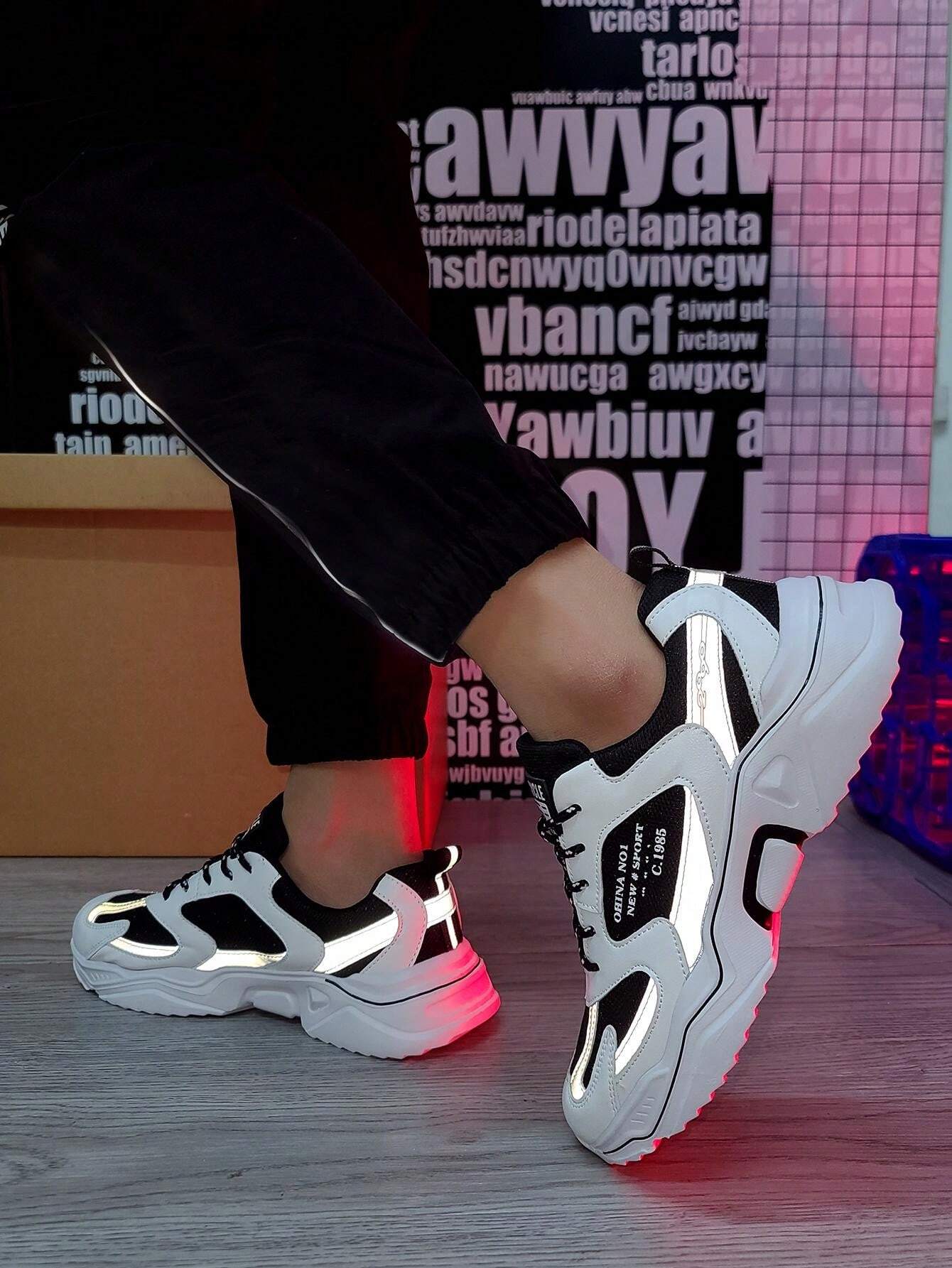 حذاء سنيكرز رجالي بتصميم عريض عاكس للضوء، أنيق ومريح للتنزه والرياضة