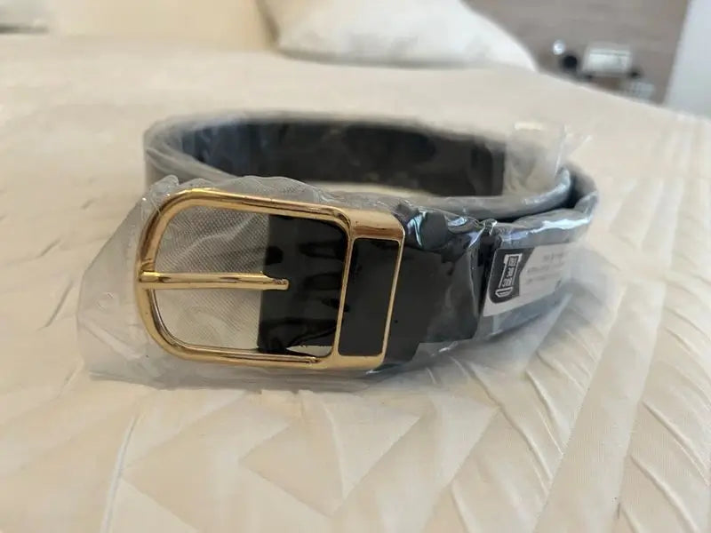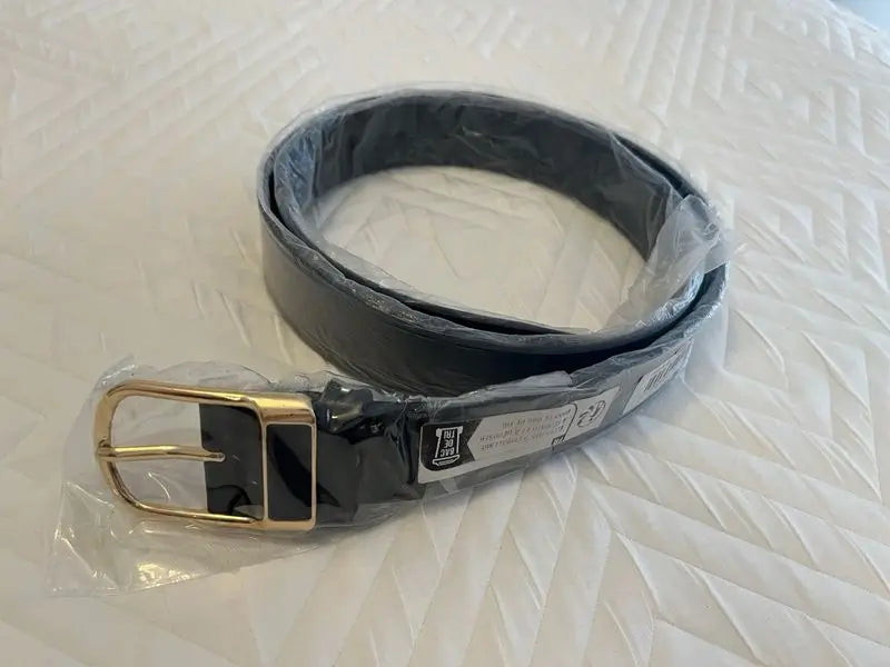 حزام مصنوع من خامة جلد صناعي باللون الأسود مع تصميم بسيط وعملي، ويأتي بمشبك معدني باللون الذهبي لإضافة لمسة كلاسيكية. مناسب للاستخدام اليومي لإضفاء مظهر متناسق على الملابس الكاجوال أو الرسمية.