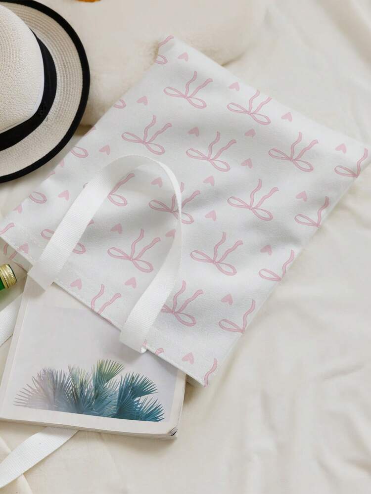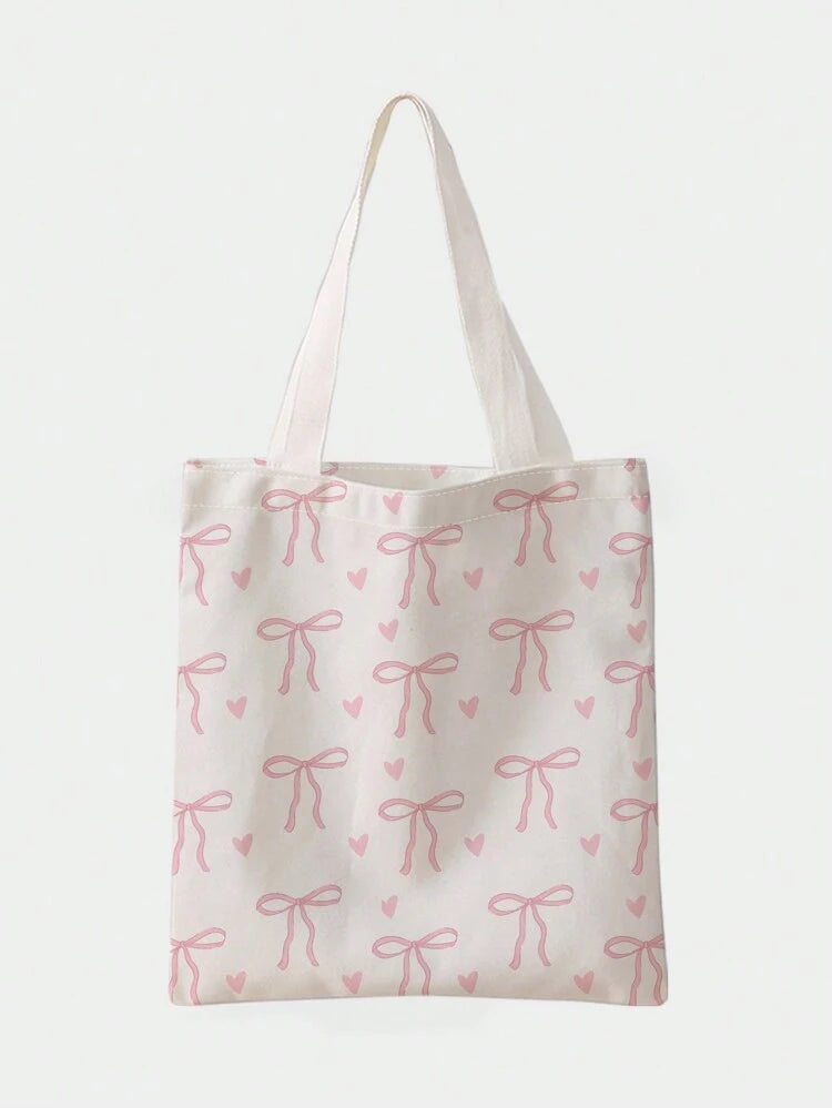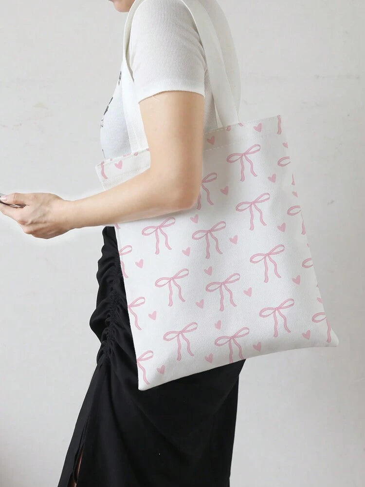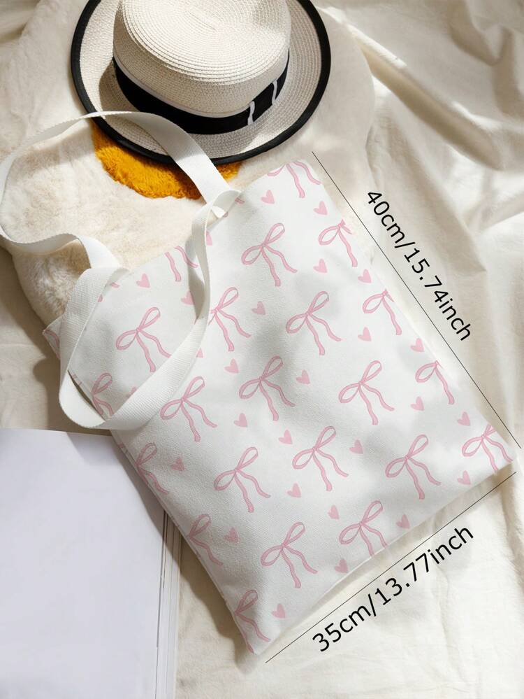 حقيبة كتف قماشية مطبوعة على الوجهين من TrendsqualityROMWE بتصميم Kawaii مع نقشة الفراشات والقلوب، وربطة عنق على شكل فراشة، وحقيبة كبيرة عصرية، وأفضل أفكار الإلهام لفصل الخريف