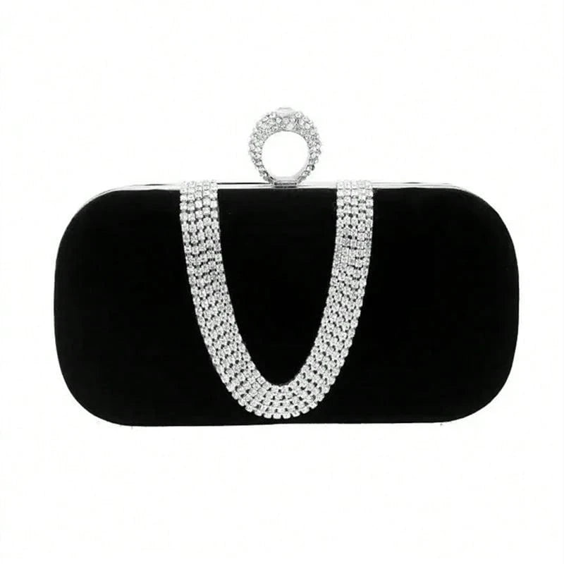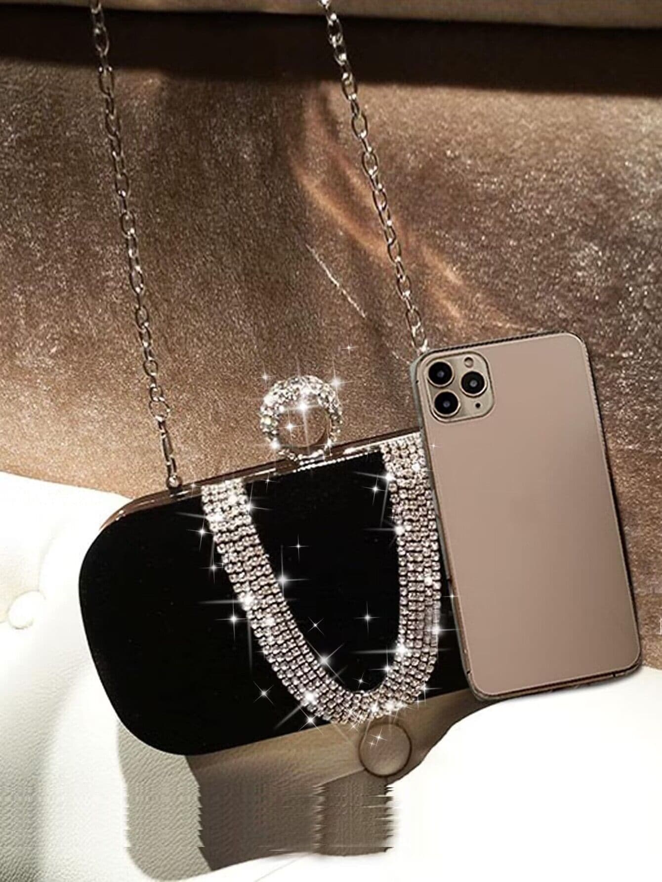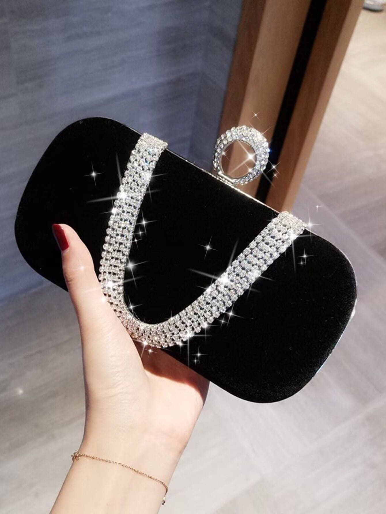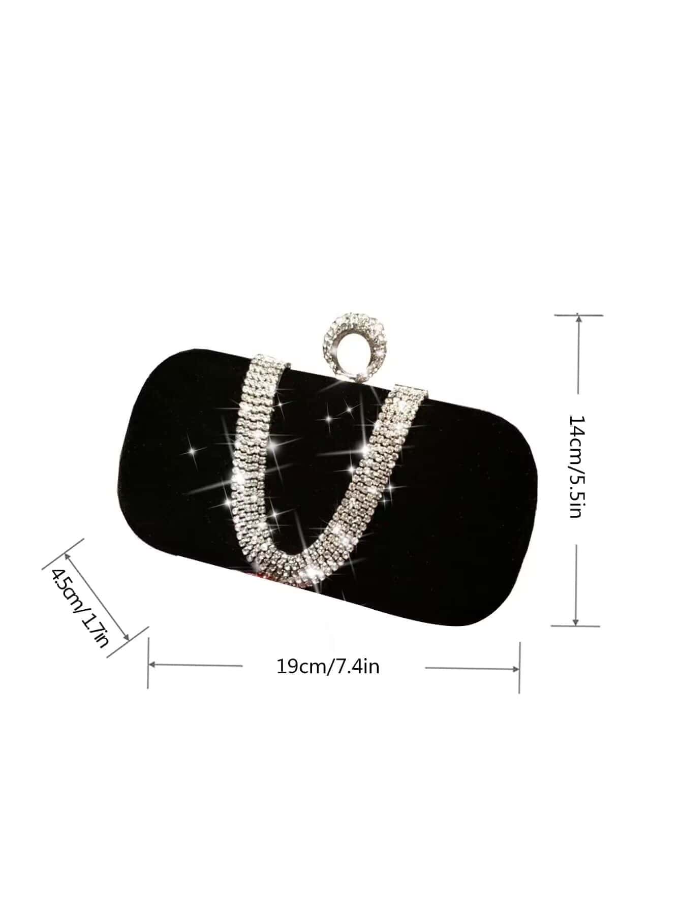 حقيبة كلاتش نسائية صغيرة أنيقة مزينة بأحجار الراين مع مقبض حلقي وحزام كتف قابل للفصل