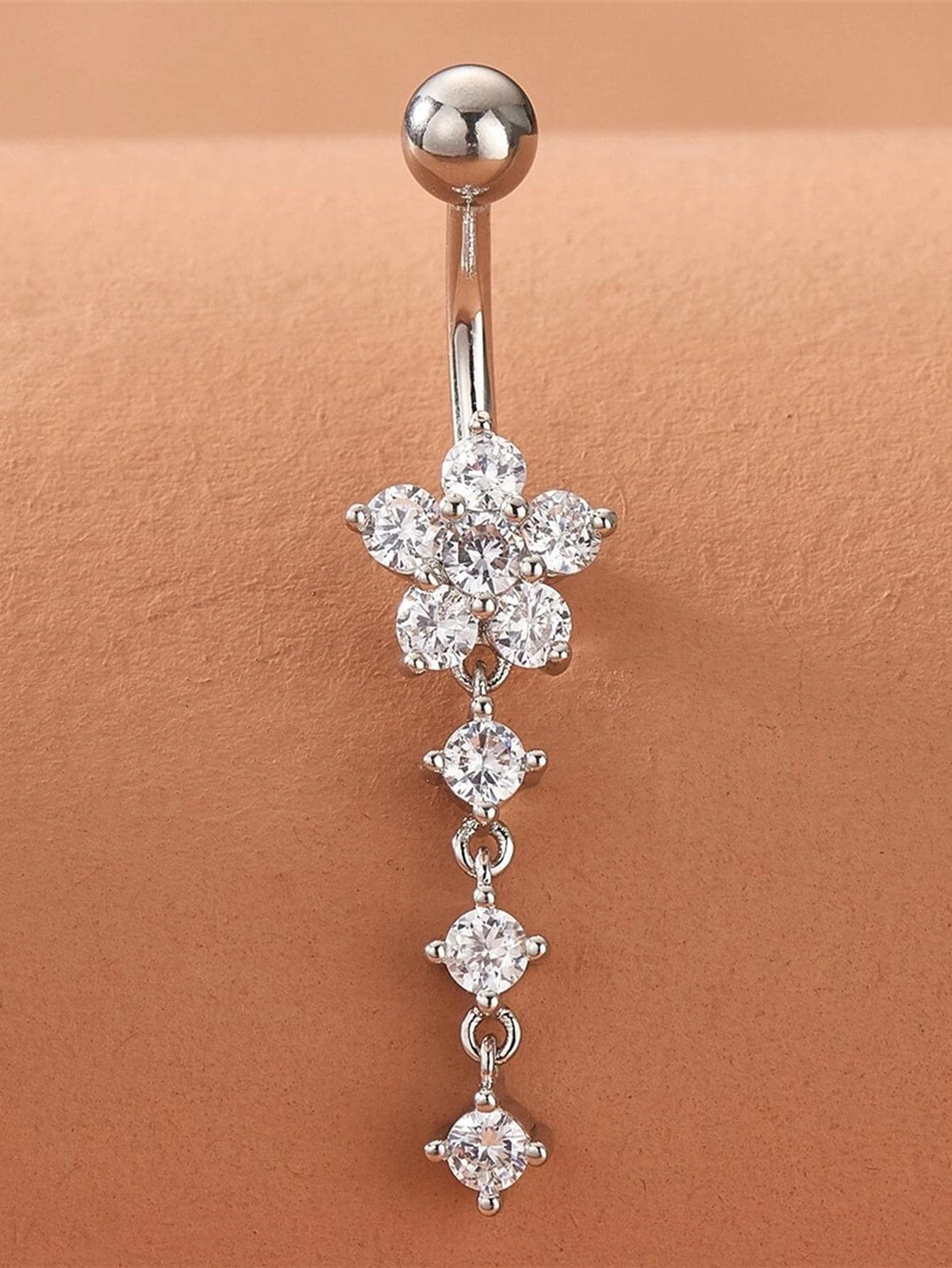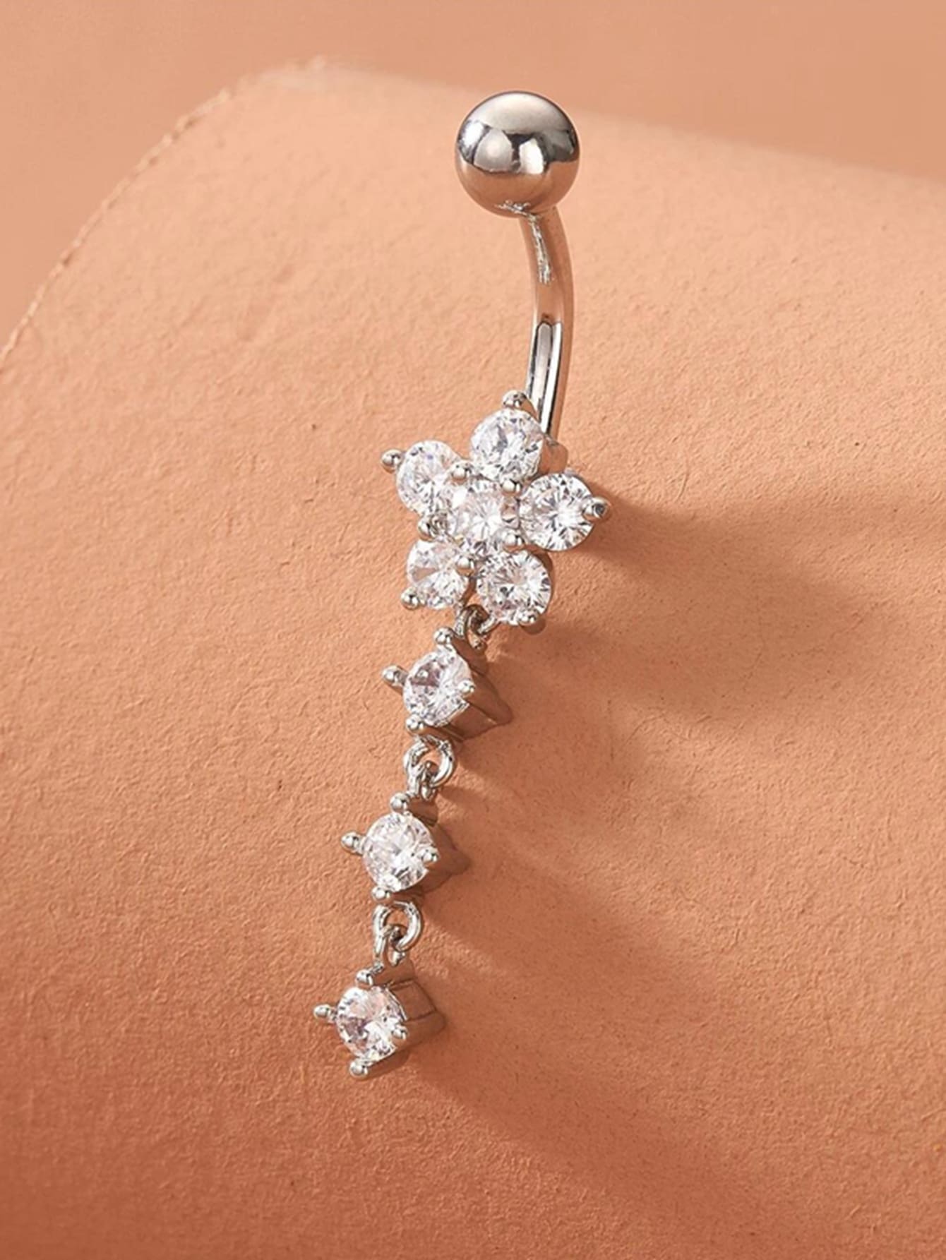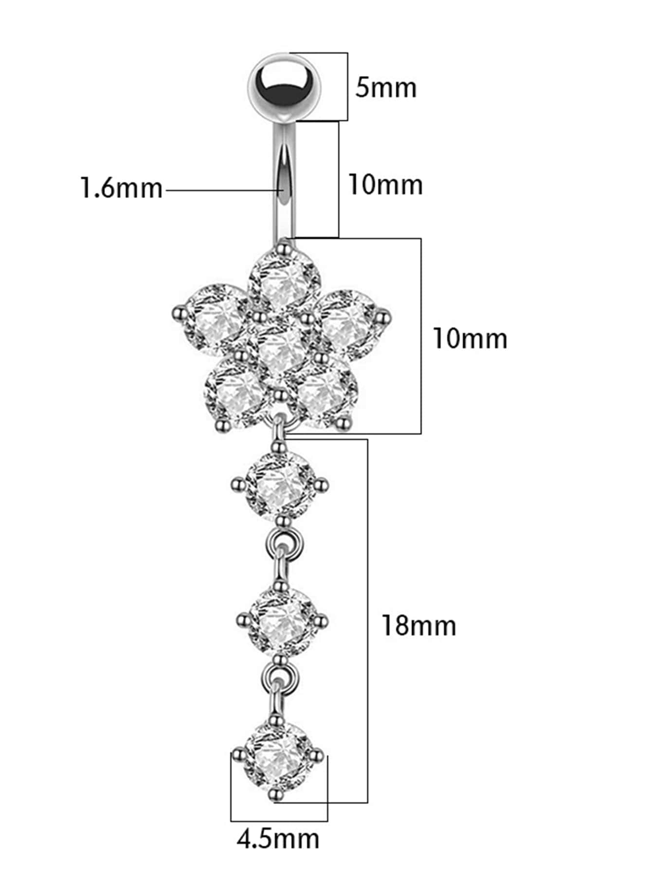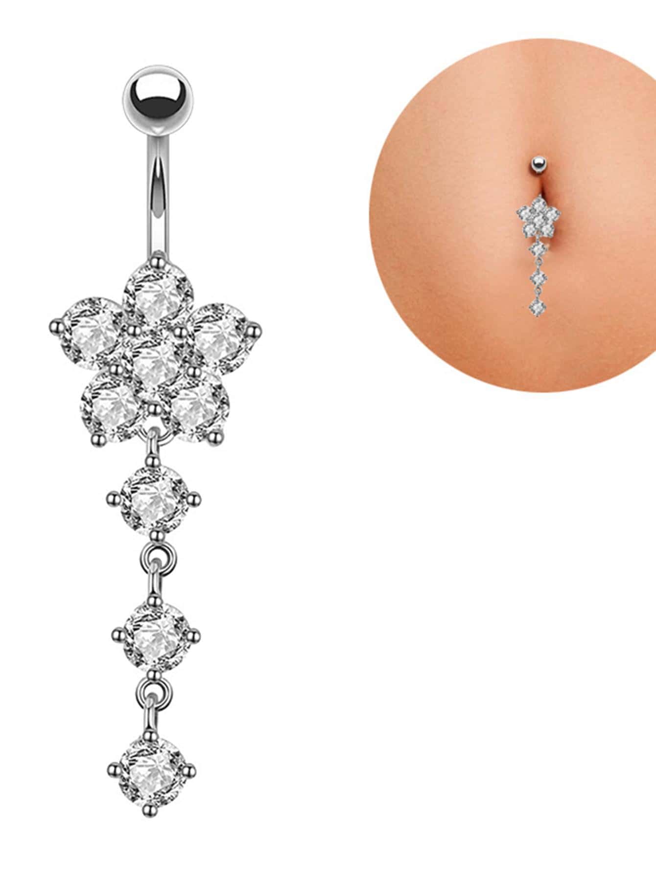 خاتم سرة من الفولاذ المقاوم للصدأ مرصع بزهرة البرقوق مع زركونيا للنساء