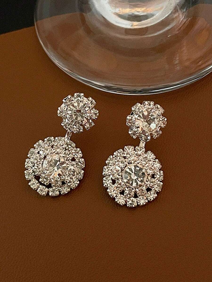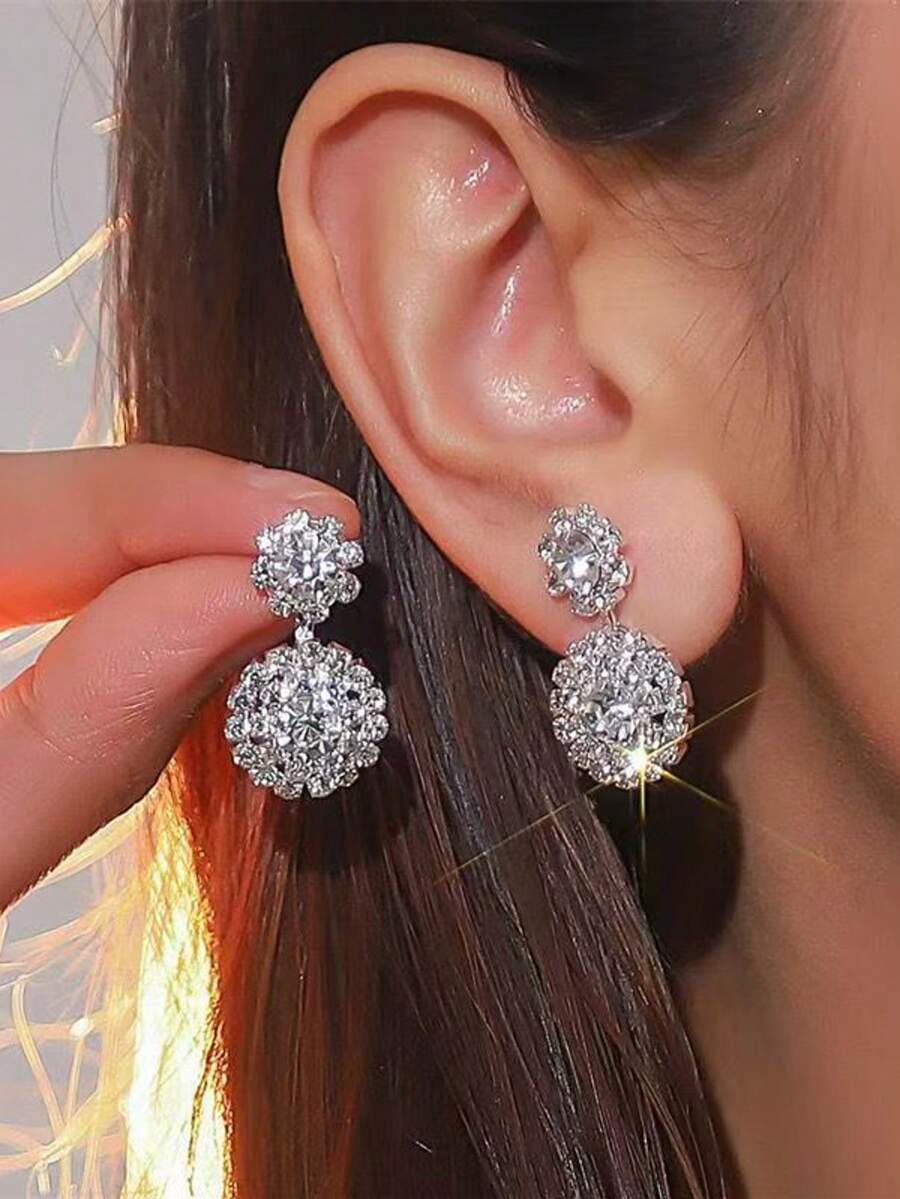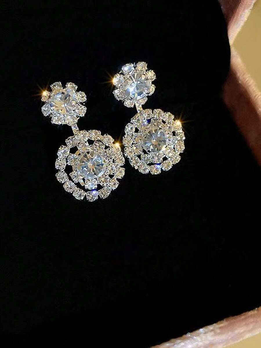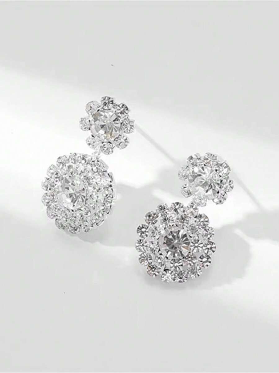 زوج واحد من أقراط الزركونيا الماسية، أحجار الراين المعلقة على شكل ندفة الثلج،