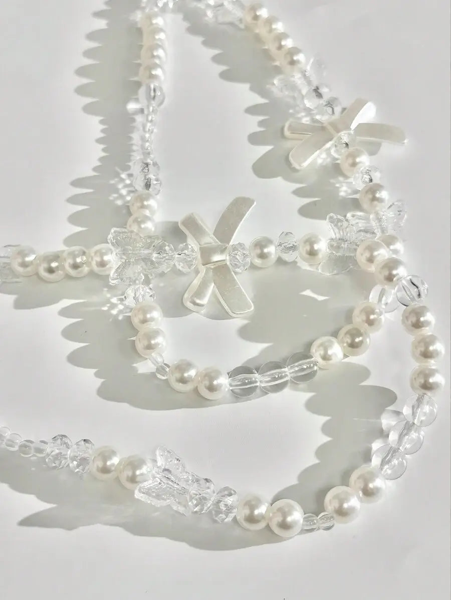 زينة هاتف على شكل فيونكة لؤلؤية مع سلسلة