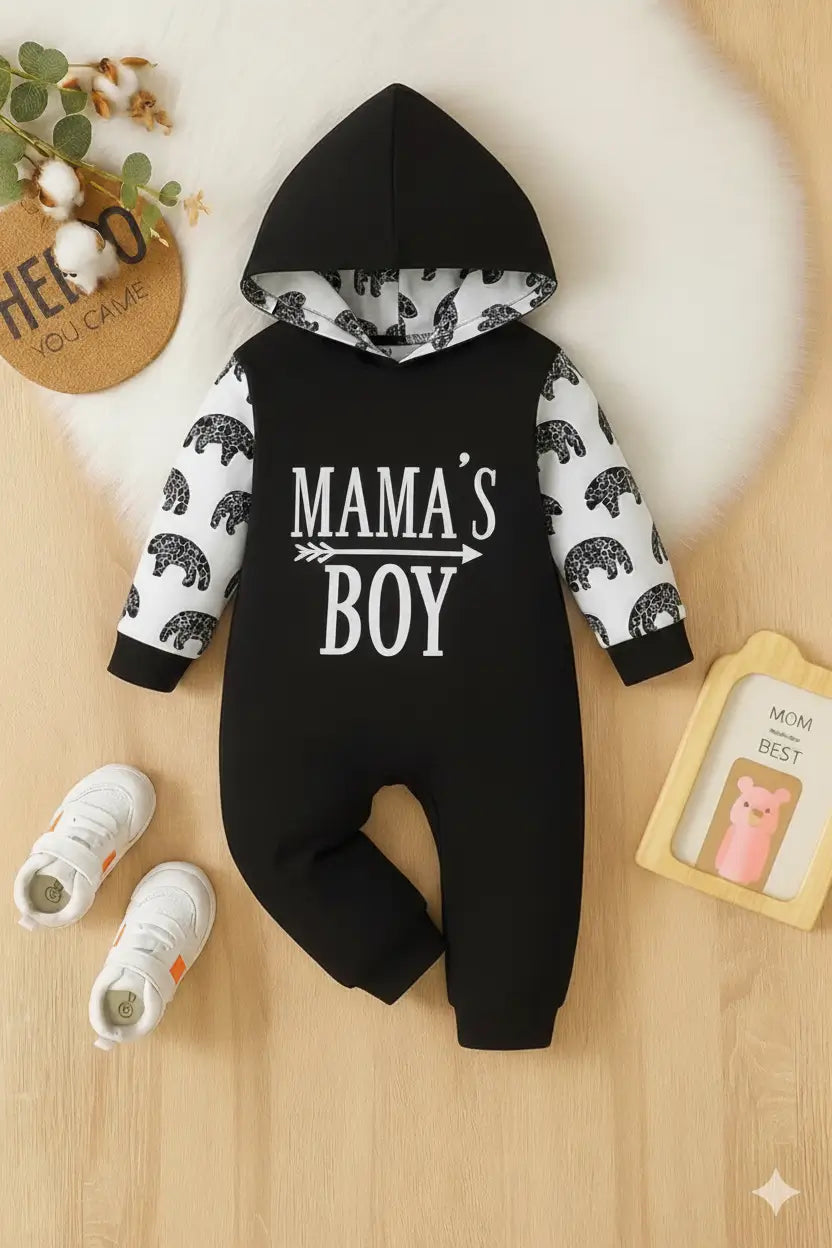 صميم عصري ولطيف يجمع بين الراحة والأناقة للأطفال. يأتي باللون الكحلي مع أكمام بيضاء مزينة بطبعات دب مميزة تضيف لمسة مرحة، بالإضافة إلى غطاء رأس عملي يمنح حماية وإطلالة كاجوال. ما يميز هذا السالوبيت هو الكتابة البارزة "Mama’s Boy" على الصدر التي تضيف طابعًا عصريًا محببًا. مصنوع من خامة قطنية ناعمة ومريحة على بشرة الطفل، مما يجعله مثاليًا للارتداء اليومي والخروجات البسيطة مع توفير الدفء وسهولة الحركة في نفس الوقت