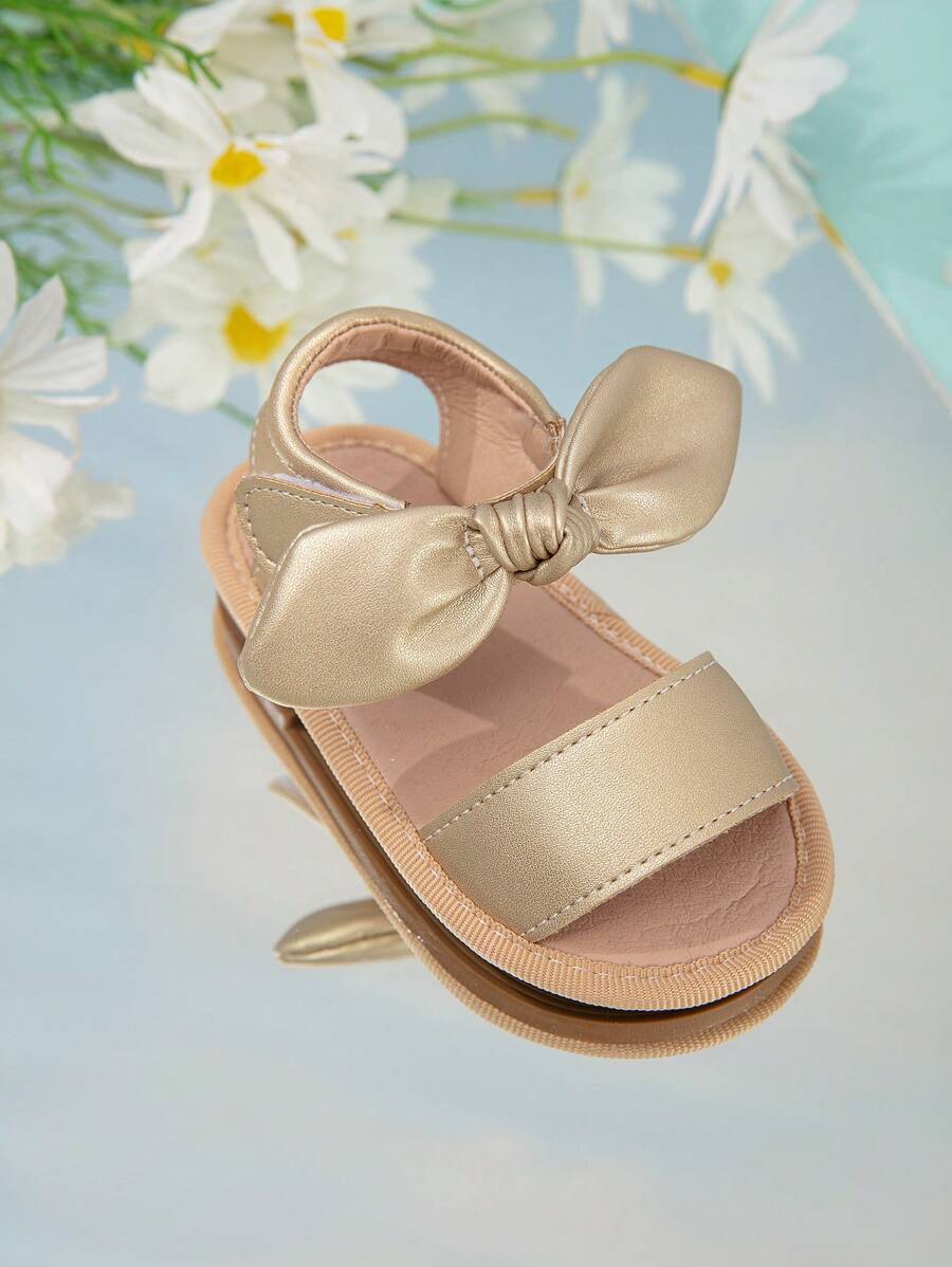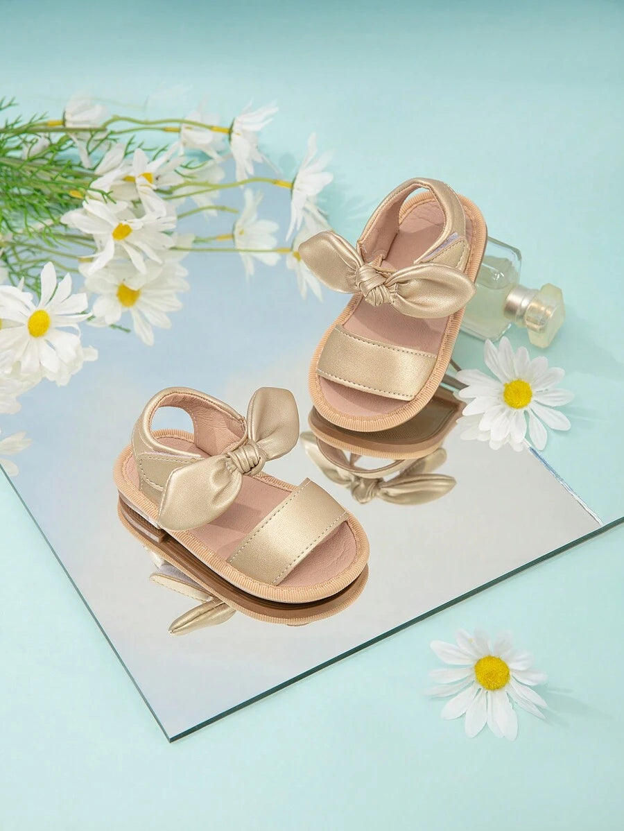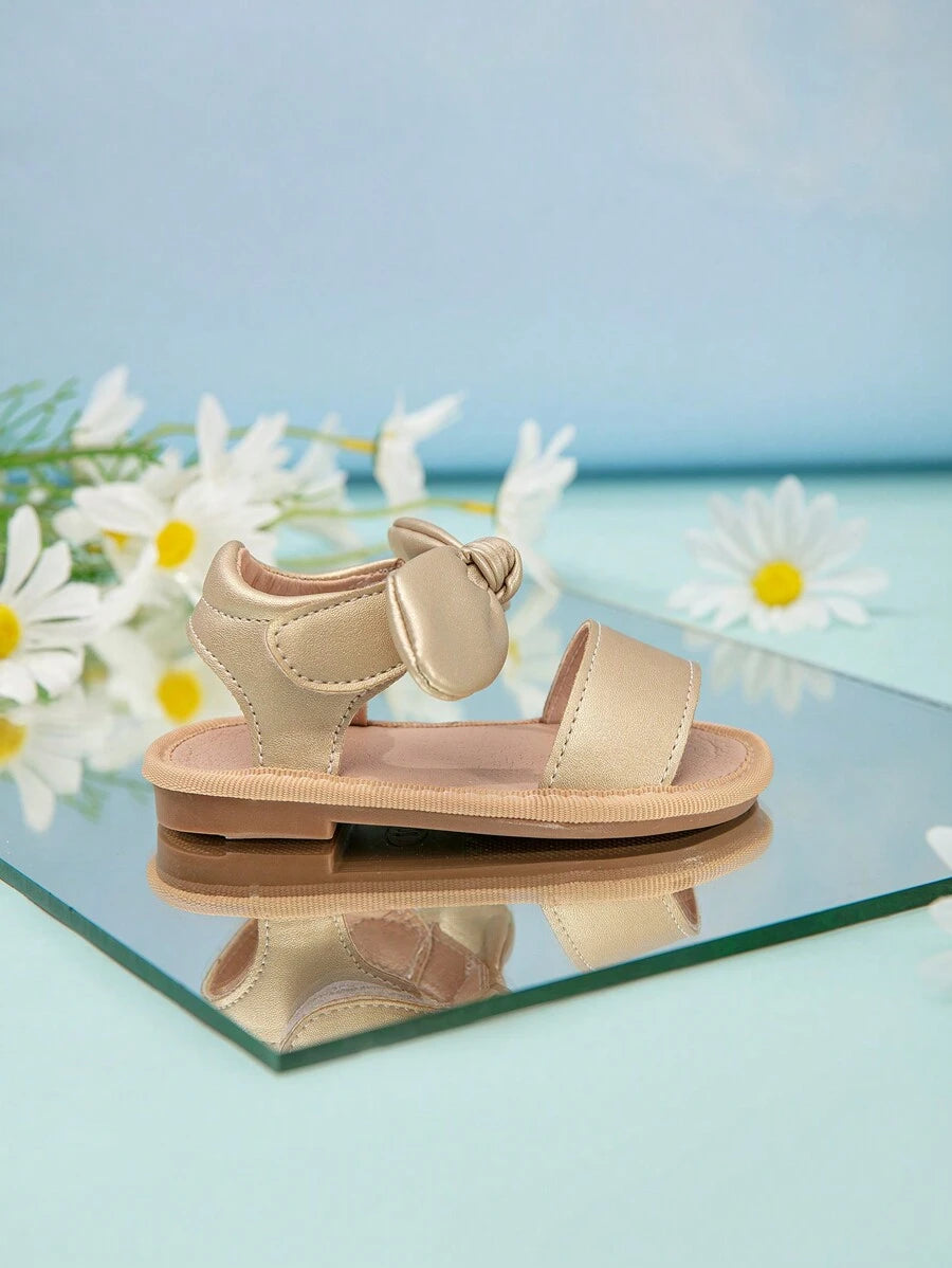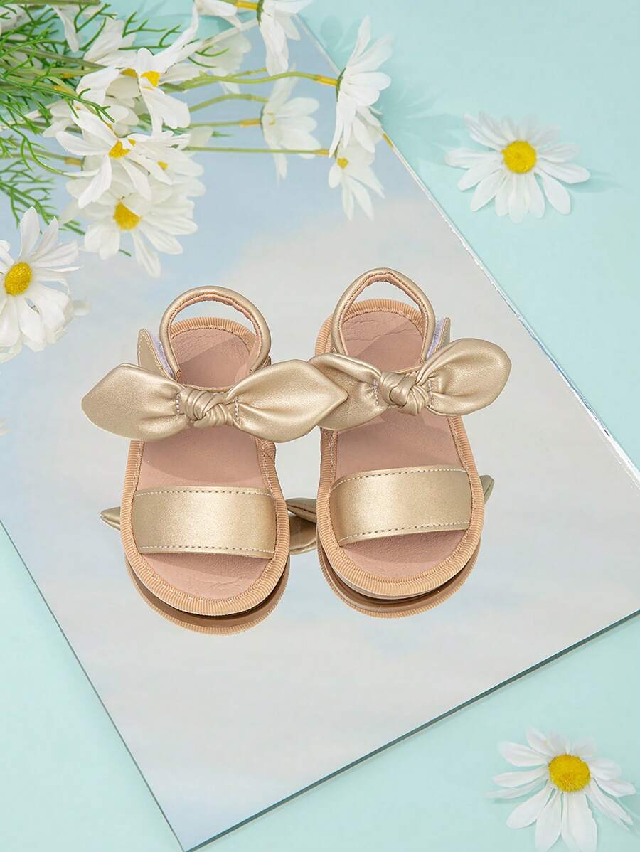 صندل أطفال رضع وتودلر بحزام كاحل بتصميم بسيط وإغلاق بخطاف وحلقة مع زينة عقدة Shein